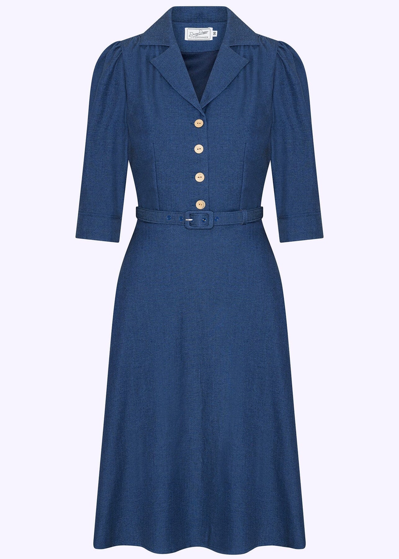 The Betty shirt dress from Daisy Dapper is a beautiful tribute to the classic vintage dress – elegant, simple, and perfectly tailored to flatter the feminine figure. This timeless piece combines the relaxed feel of denim with a fitted silhouette that highlights your curves and creates that iconic hourglass shape.