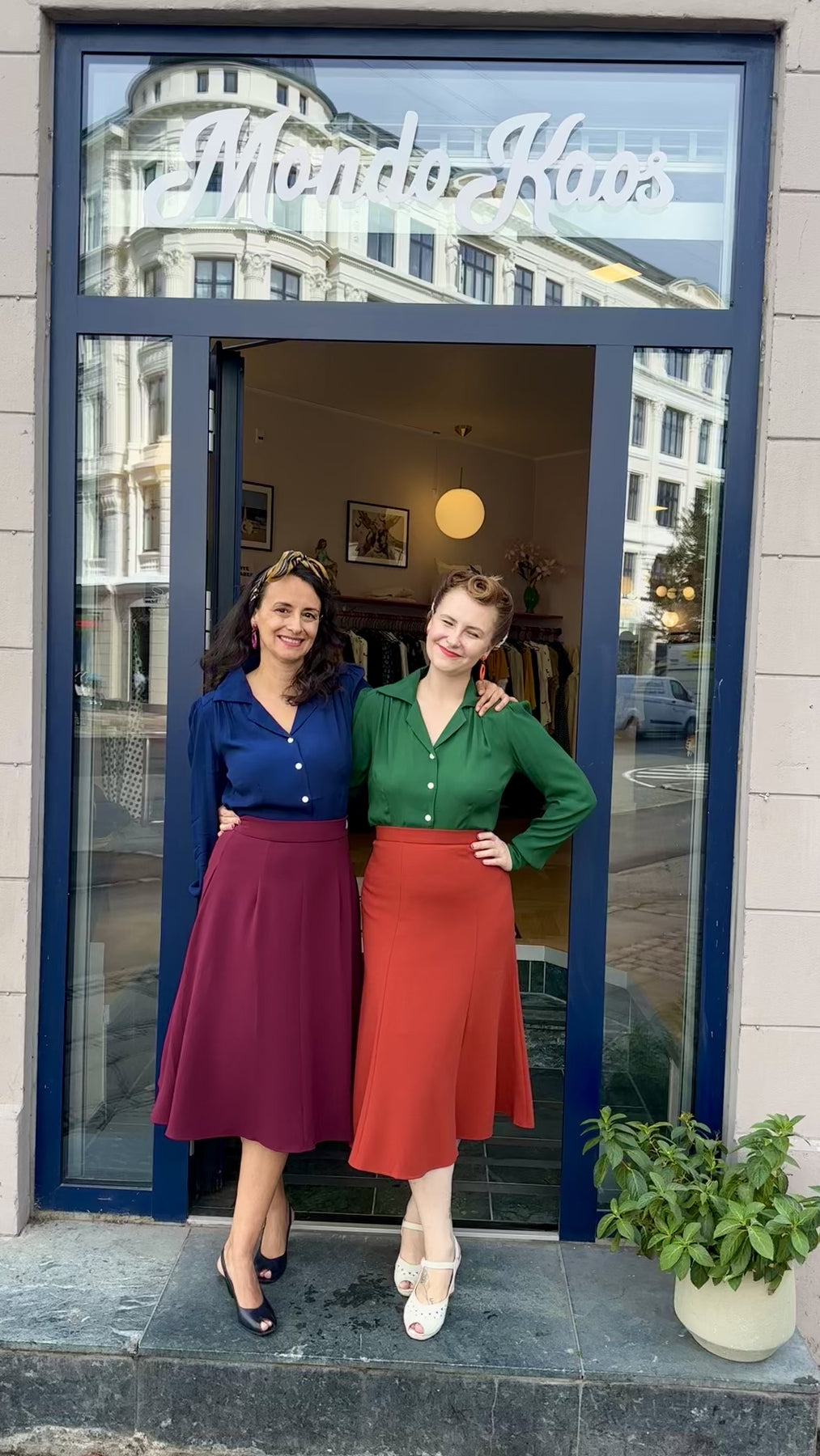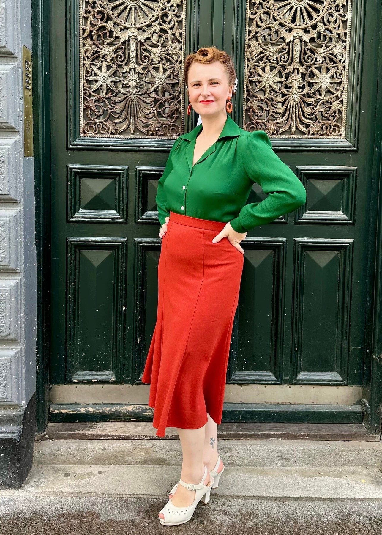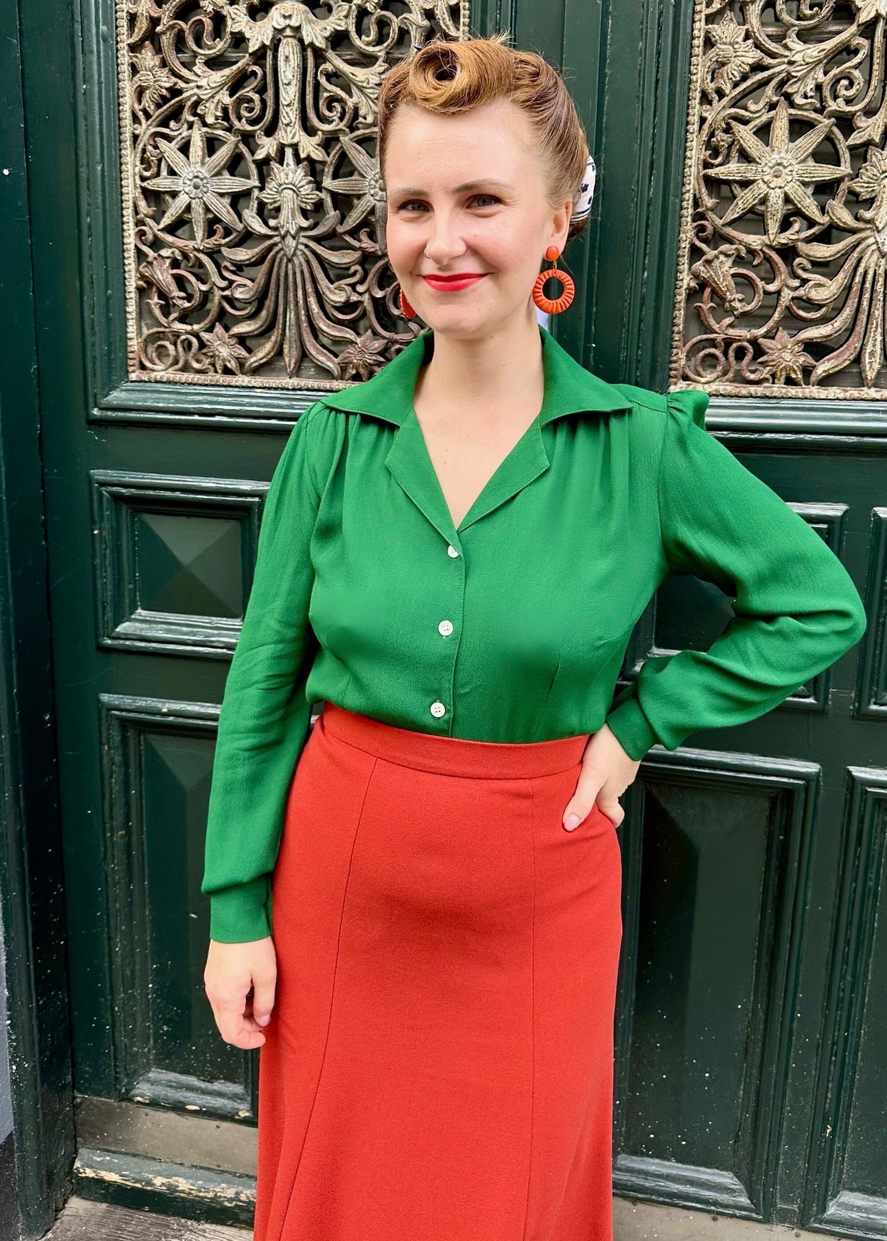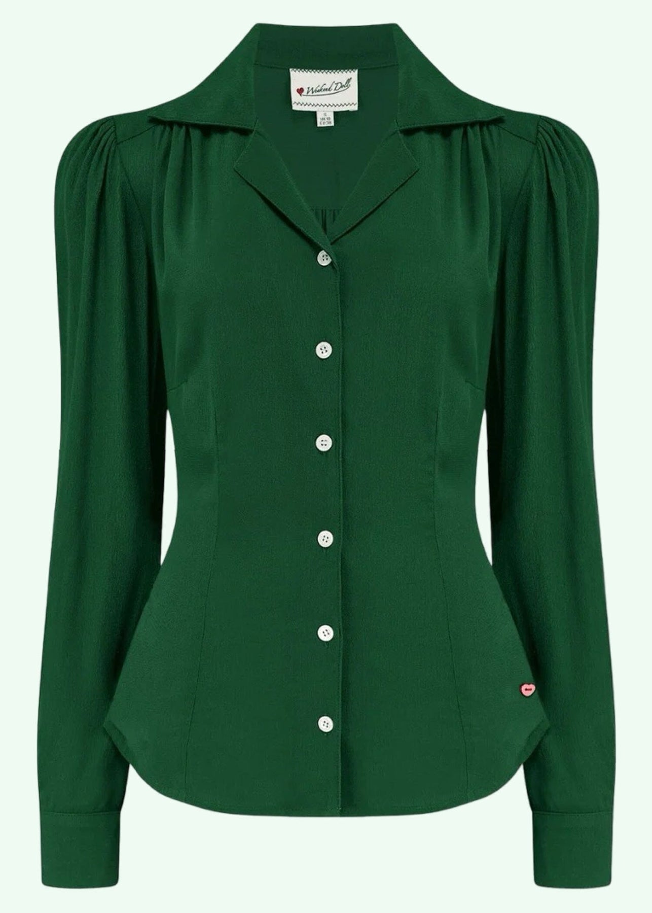 1940s Inspired Long-Sleeved Shirt in Bottle Green from Weekend Doll