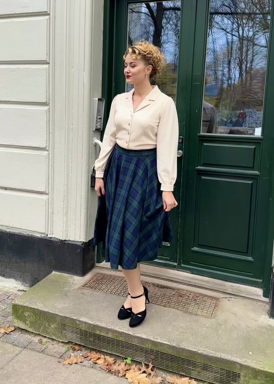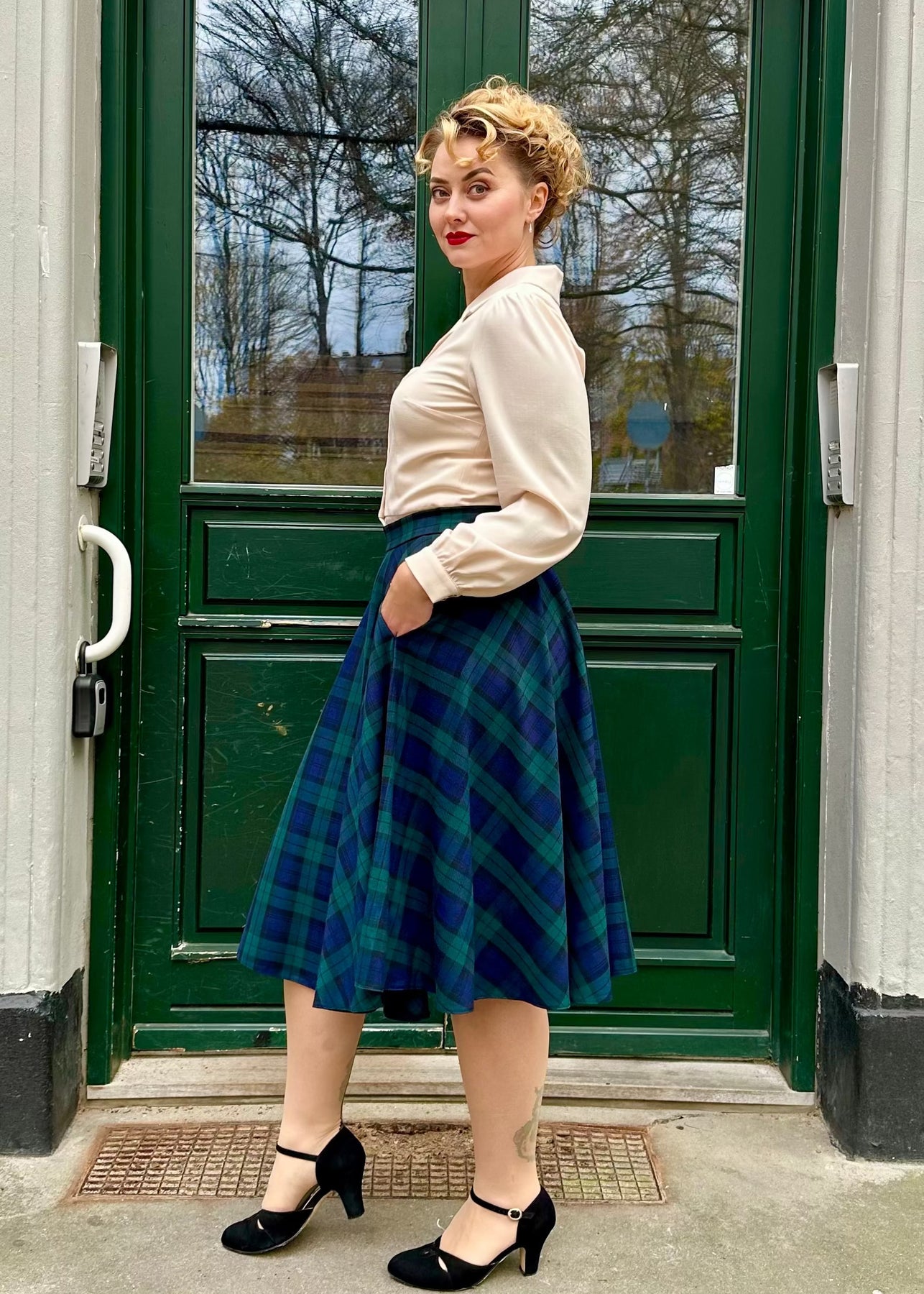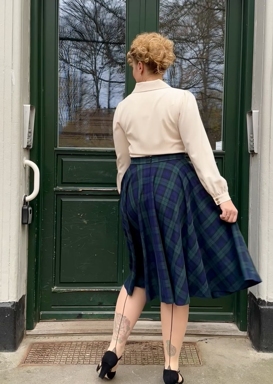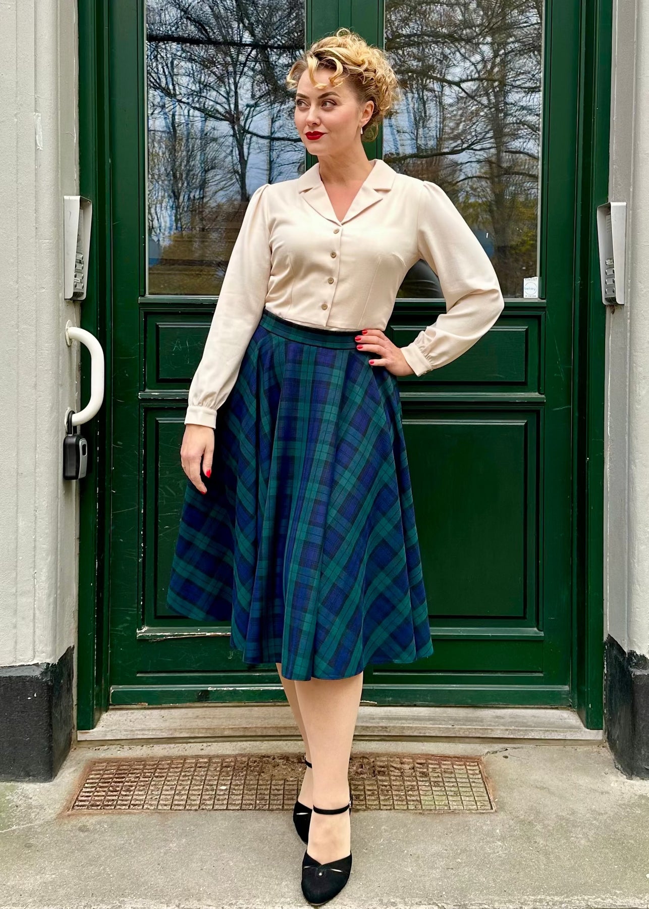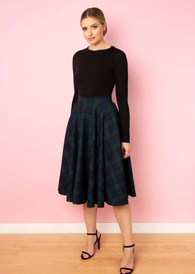 A tartan check swing skirt in cozy flannel that will fit perfectly into any vintage and retro autumn wardrobe.