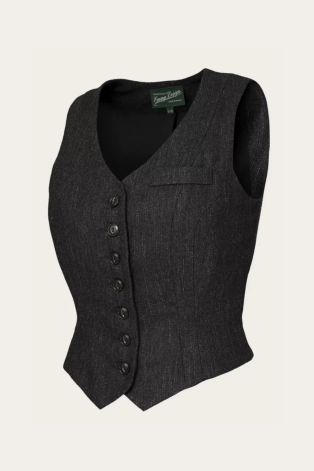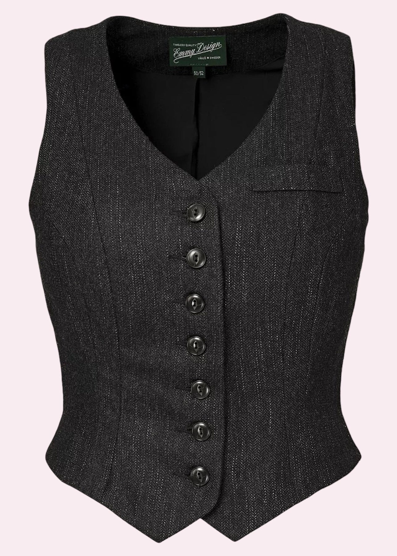 The waistcoat is a true wardrobe classic and we almost always have a waistcoat in our collections because it can be styled in a variety of ways - from Edwardian elegance to 1930s chic to a more modern look. Match with the matching trousers or a simple pencil skirt or pencil skirt for an elegant suit.