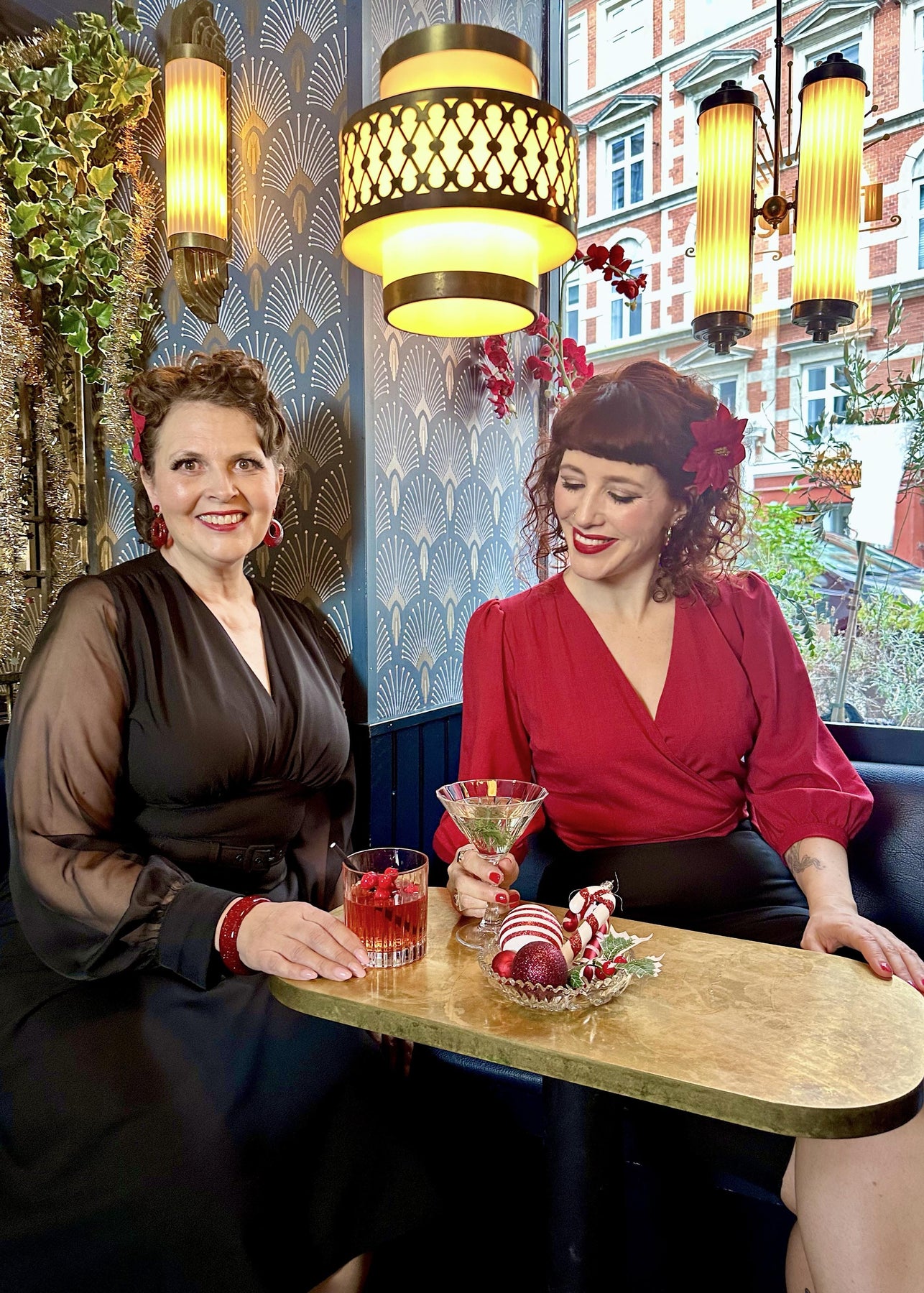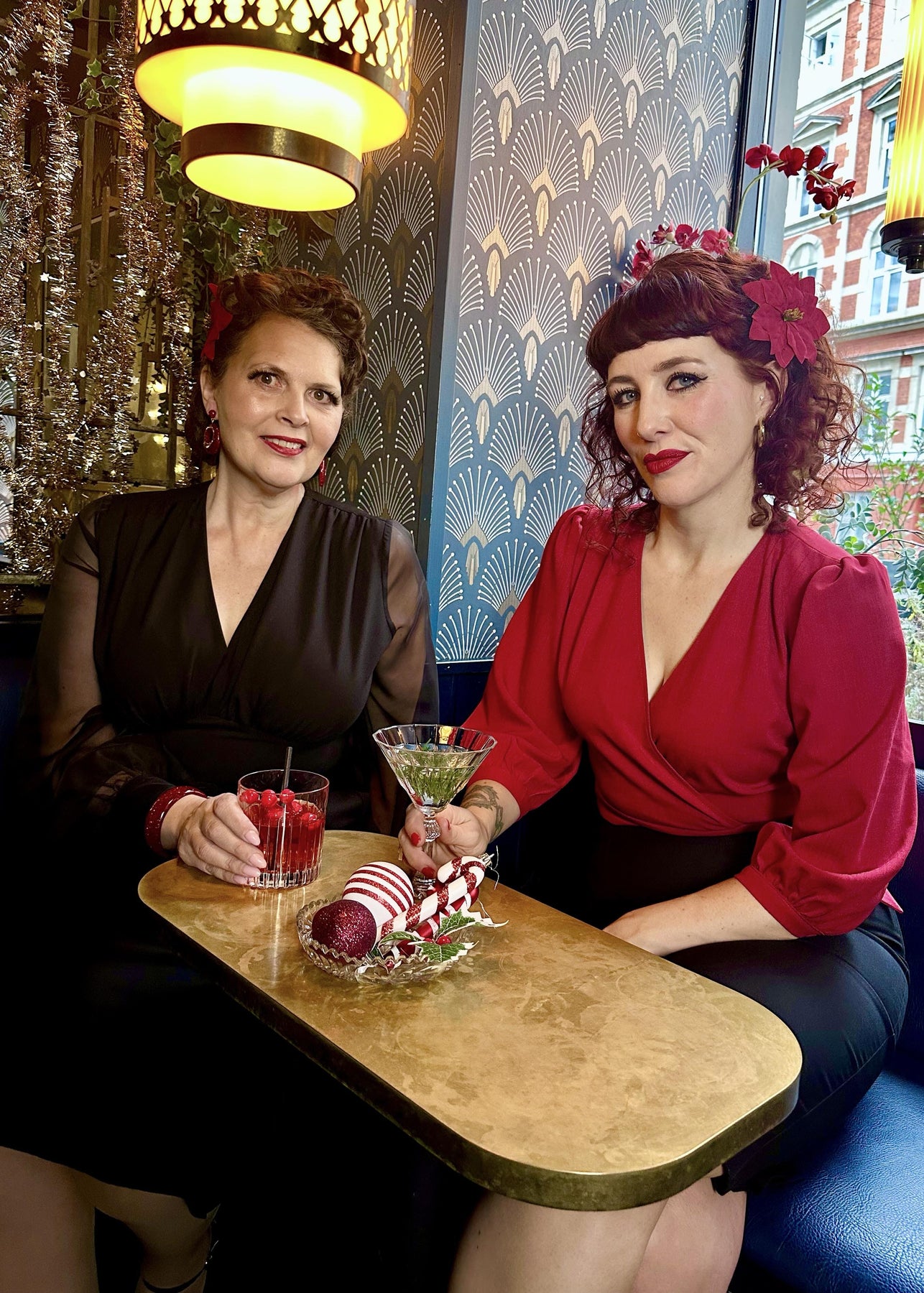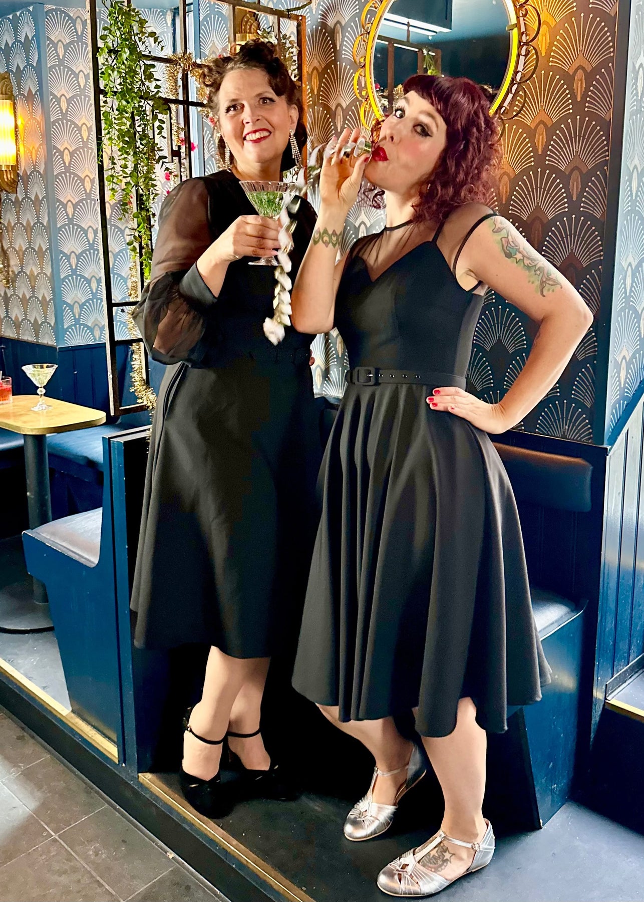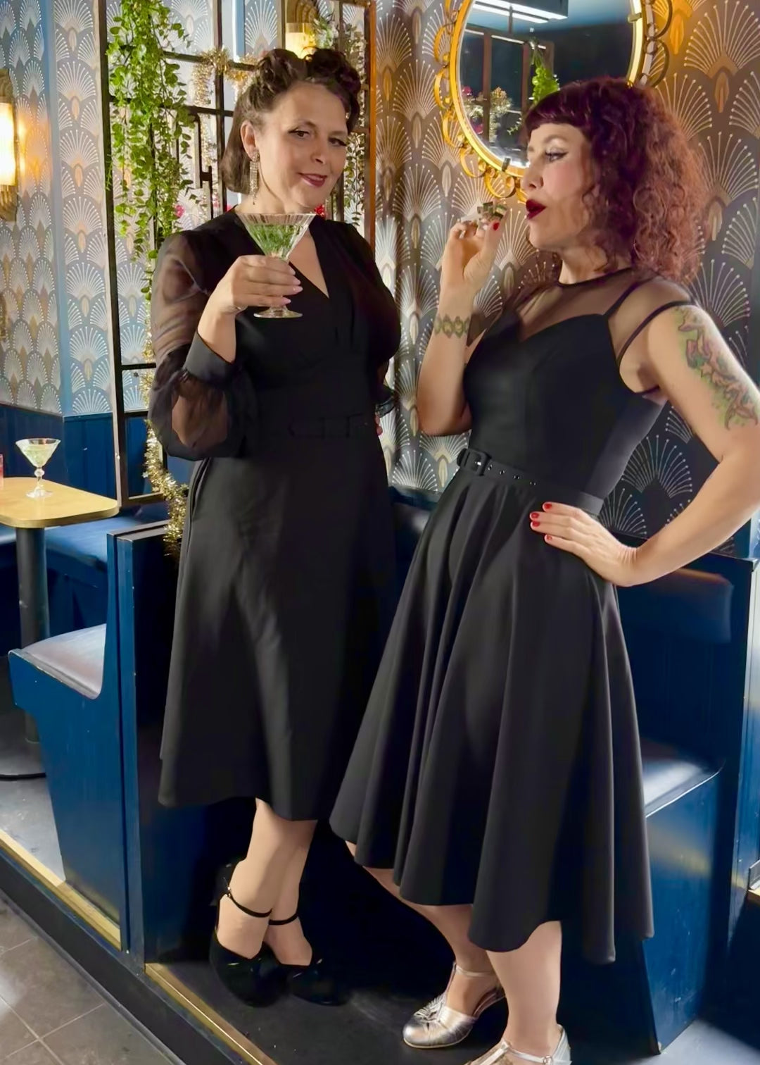 The Marilyn dress from Daisy Dapper, but with an A-line skirt and long chiffon sleeves, perfect for seasonal parties!
