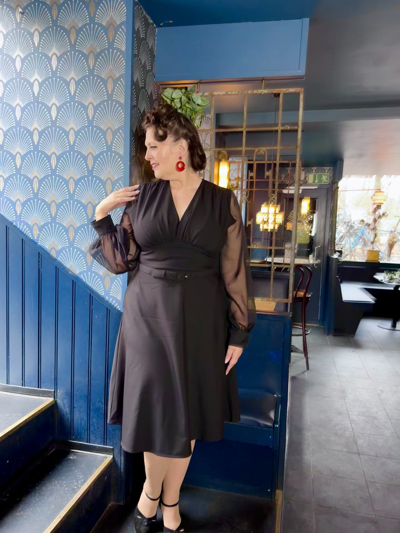 Marilyn A-line dress in black with chiffon sleeves (NEW)