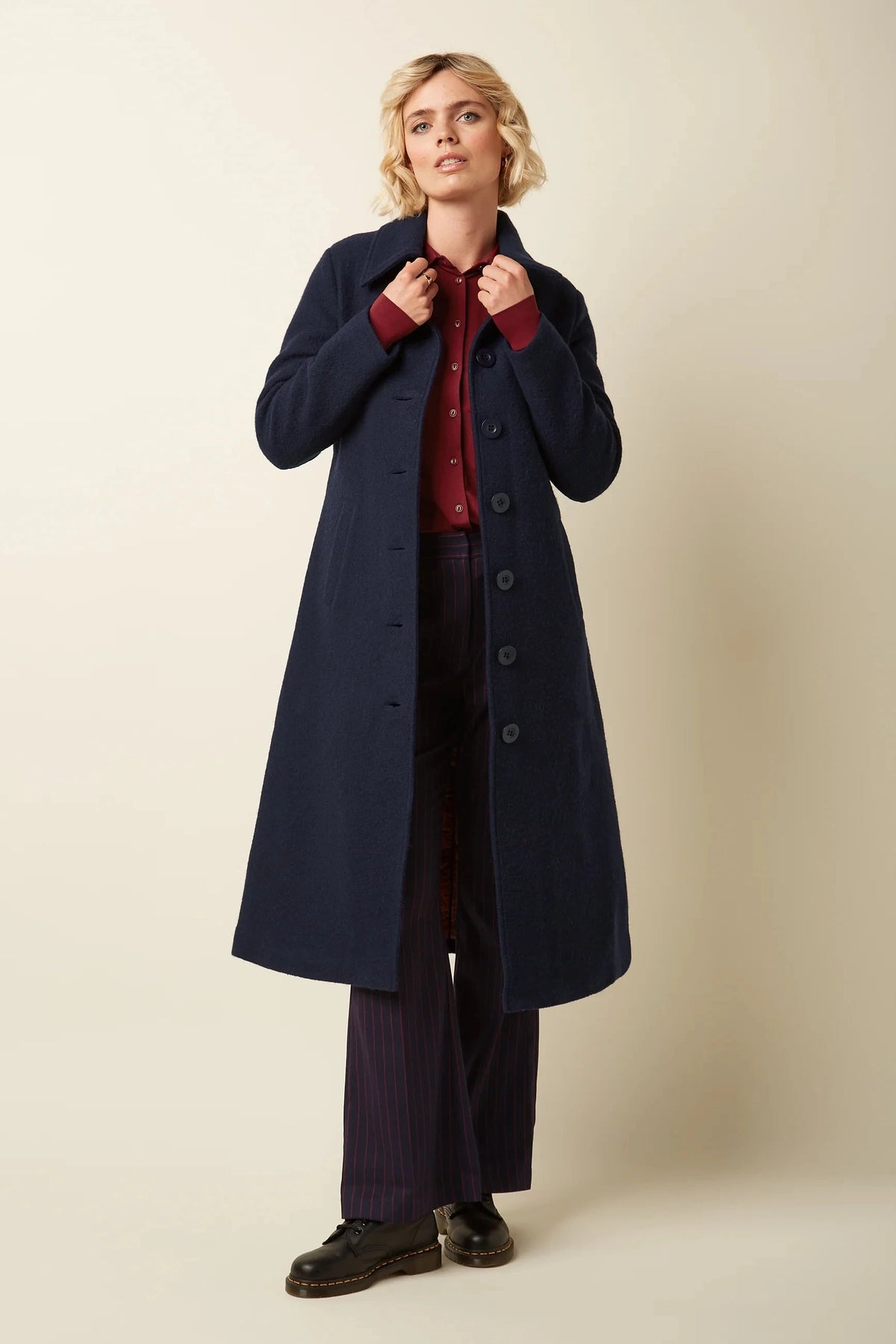 This beautiful winter coat from Very Cherry combines timeless vintage charm with modern comfort. Crafted from 100 % wool in a thick yet soft quality, it keeps you warm all winter while maintaining an elegant silhouette.