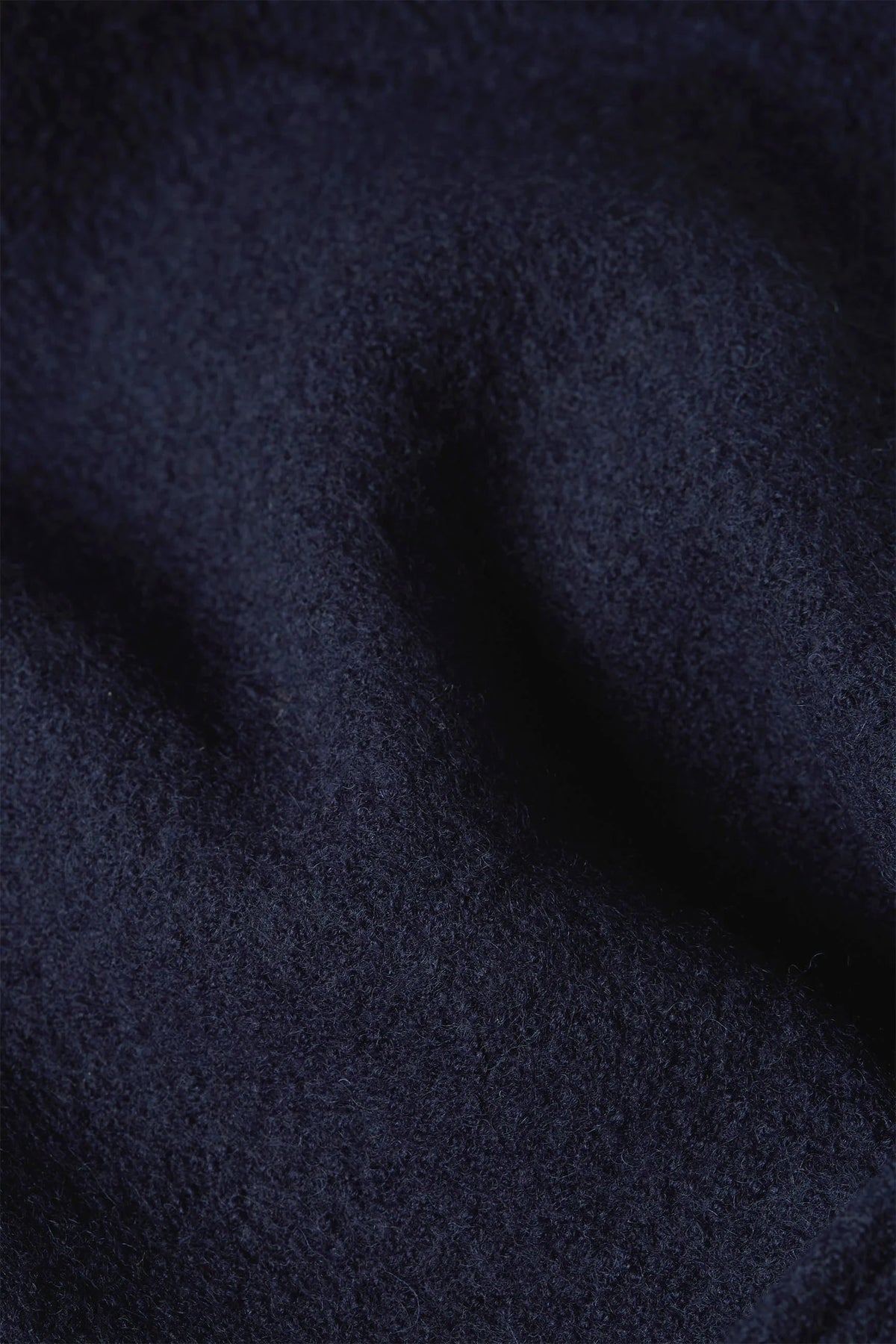 En kort jakke til overgangssæsonen i navy uld, og behagelige elastiske kanter som giver form og holder på varmen.