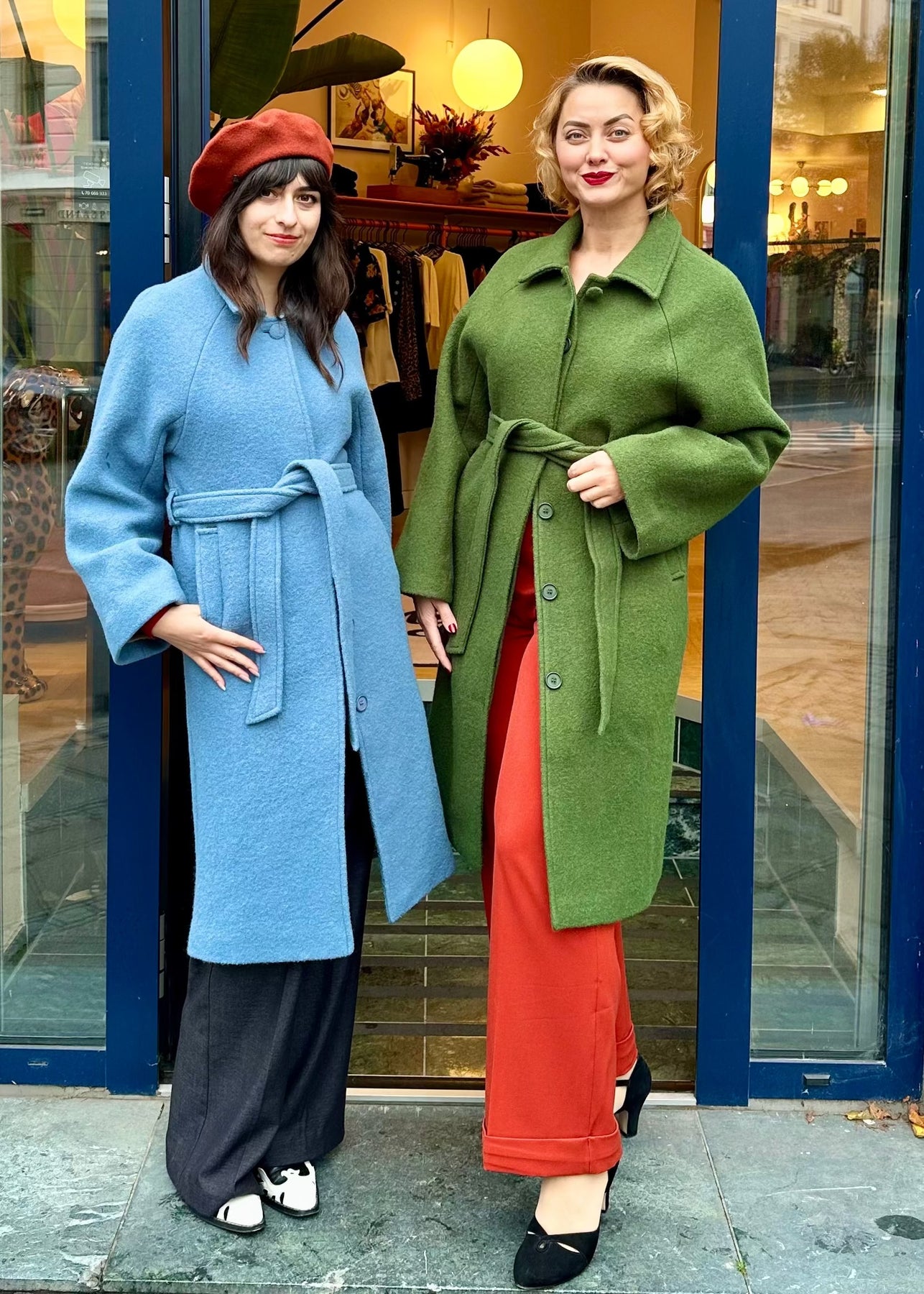 This beautiful winter coat from Very Cherry combines timeless vintage charm with modern comfort. Crafted from 100 % wool in a thick yet soft quality, it keeps you warm all winter while maintaining an elegant silhouette.