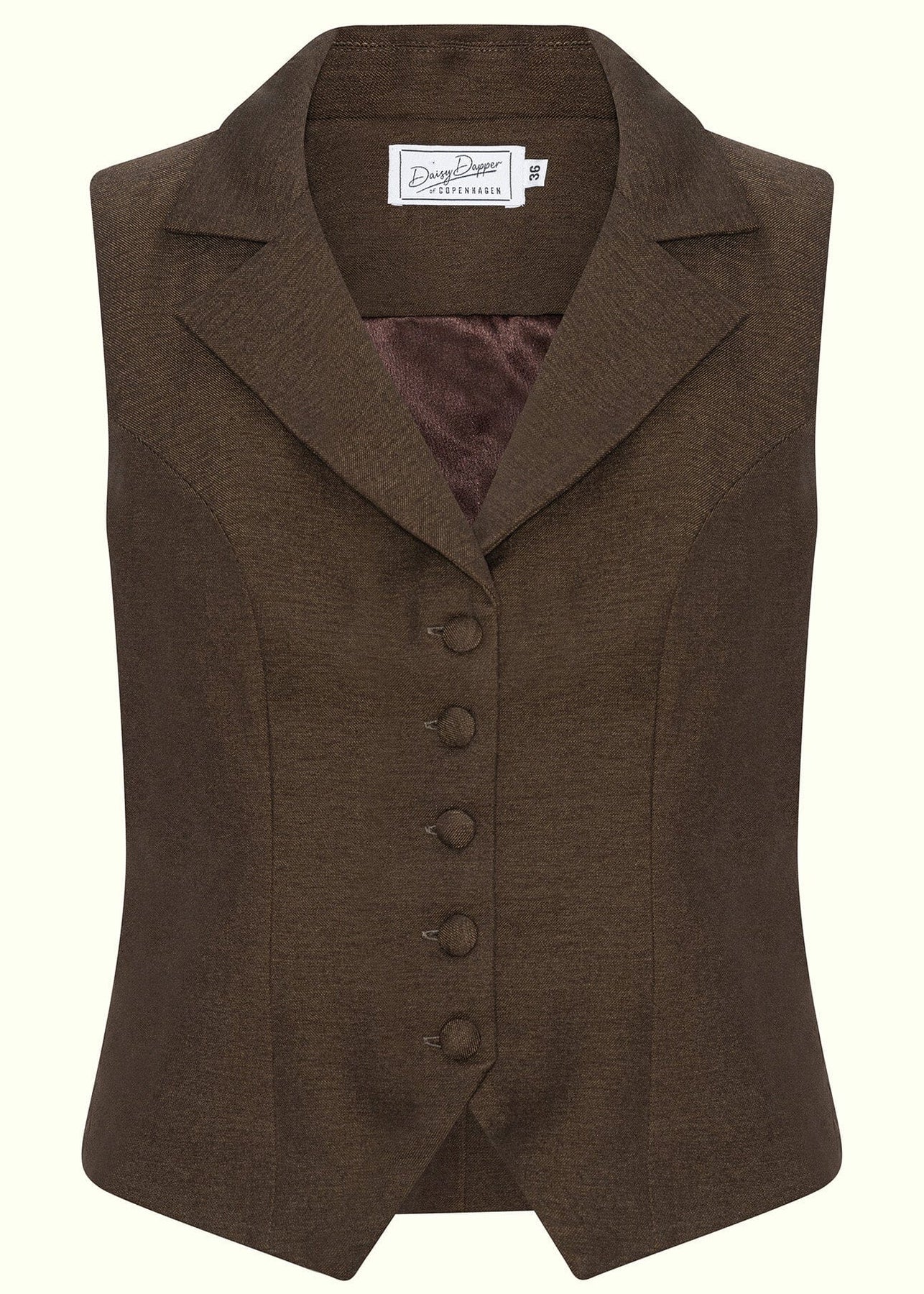 Create a sophisticated and effortlessly cool retro look with the beautiful Marlene vest from Daisy Dapper – inspired by the iconic menswear silhouettes of the 1940s, reimagined to flatter the feminine figure.
