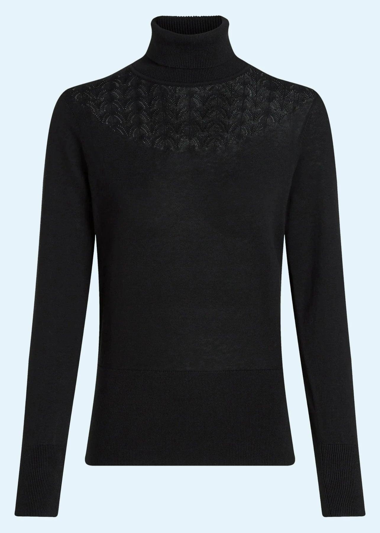 Perfect basic top with a warm turtleneck and fine lace pattern.