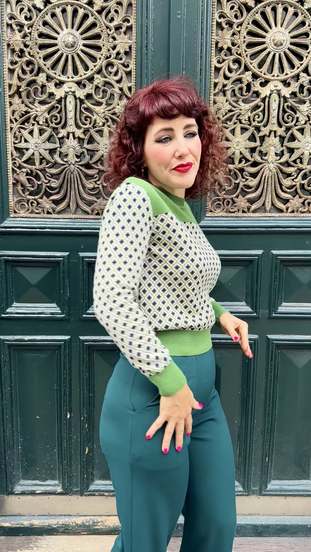 Meet the new Clara top – designed with a beautiful blue “check” weave pattern, contrasted with a rich green neckline and ribbed trims. Subtle yet striking, she’s a true wardrobe classic.