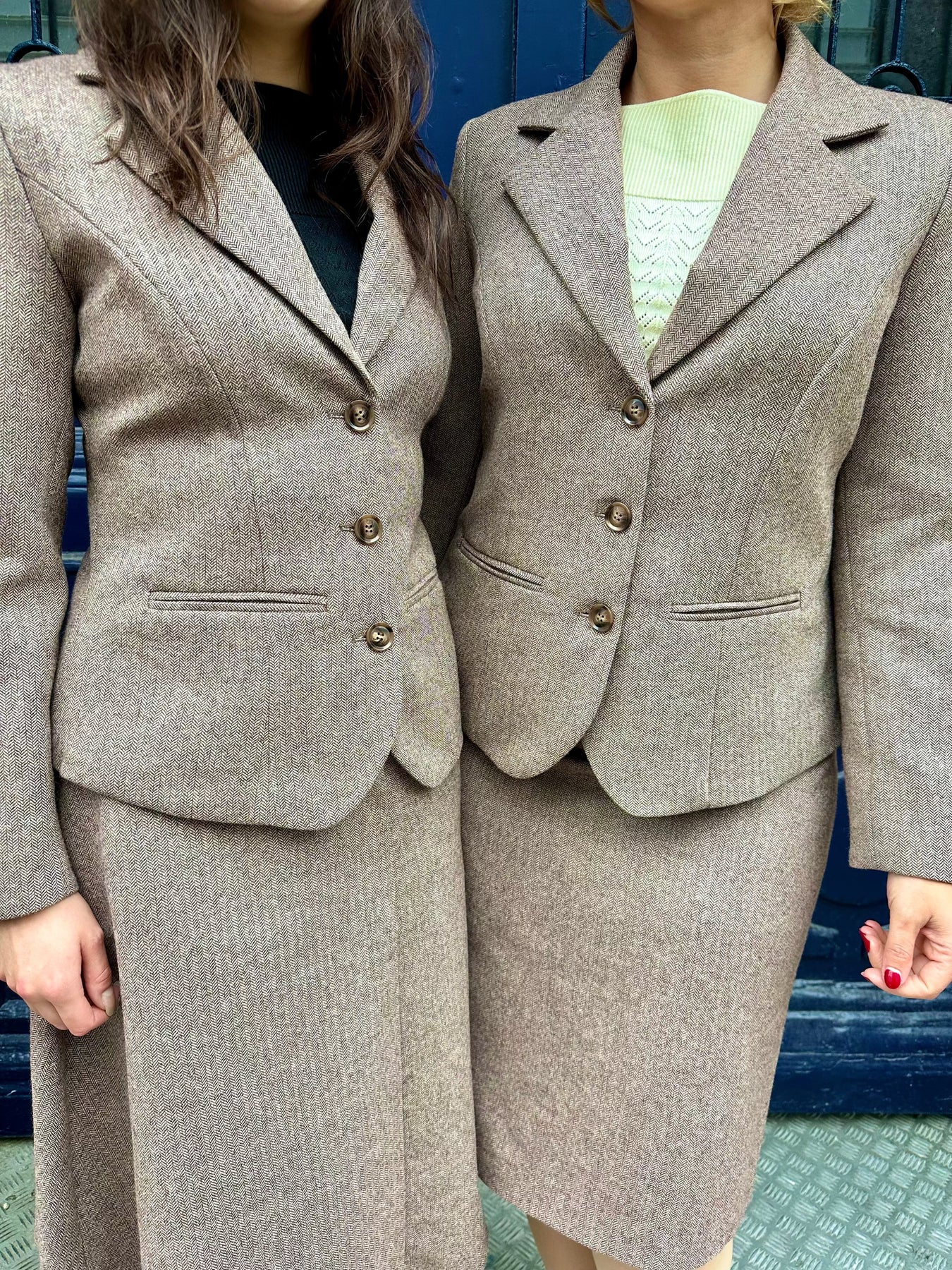 A stunning fitted blazer that perfectly captures the bold and feminine silhouette of 1940s fashion.