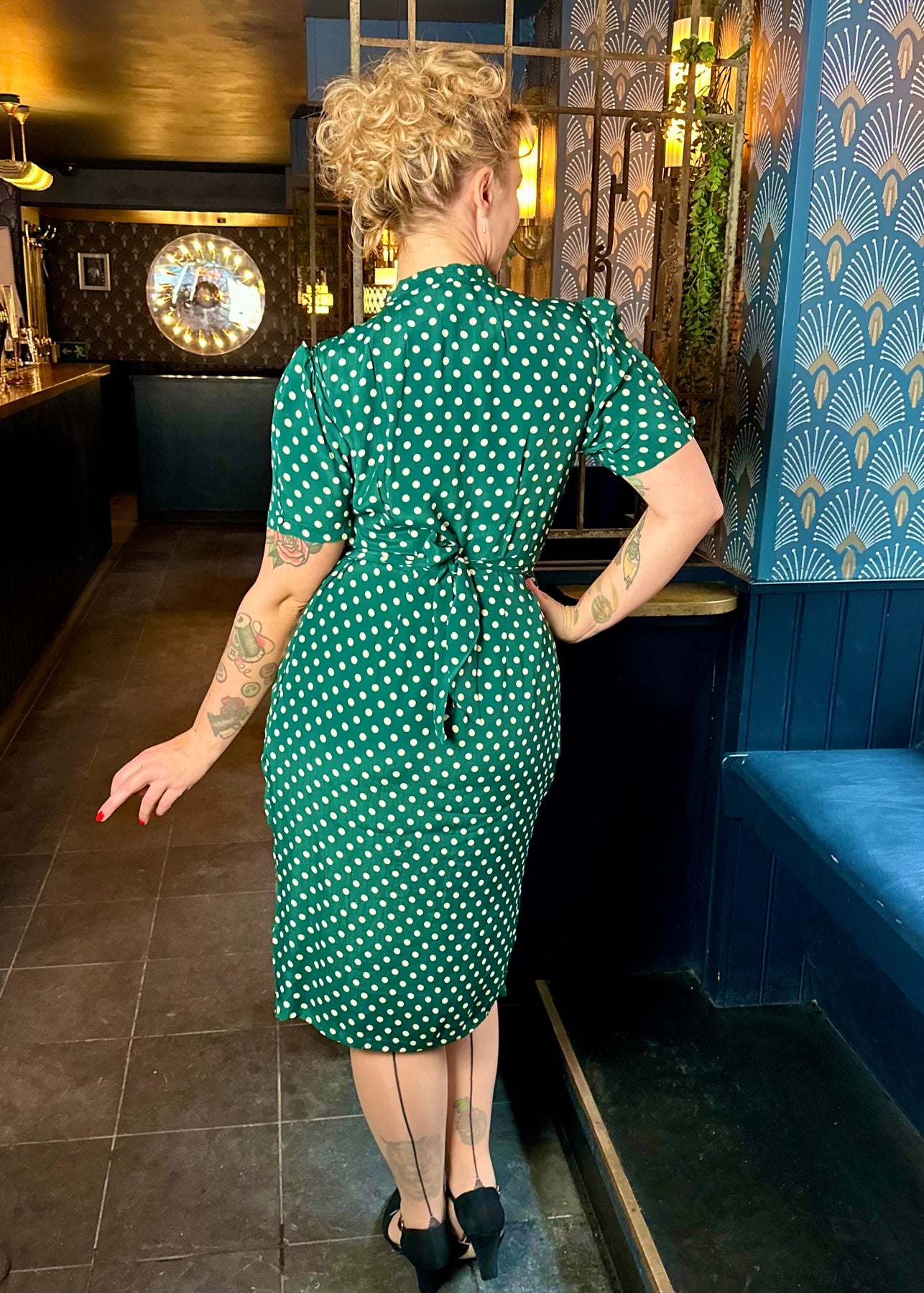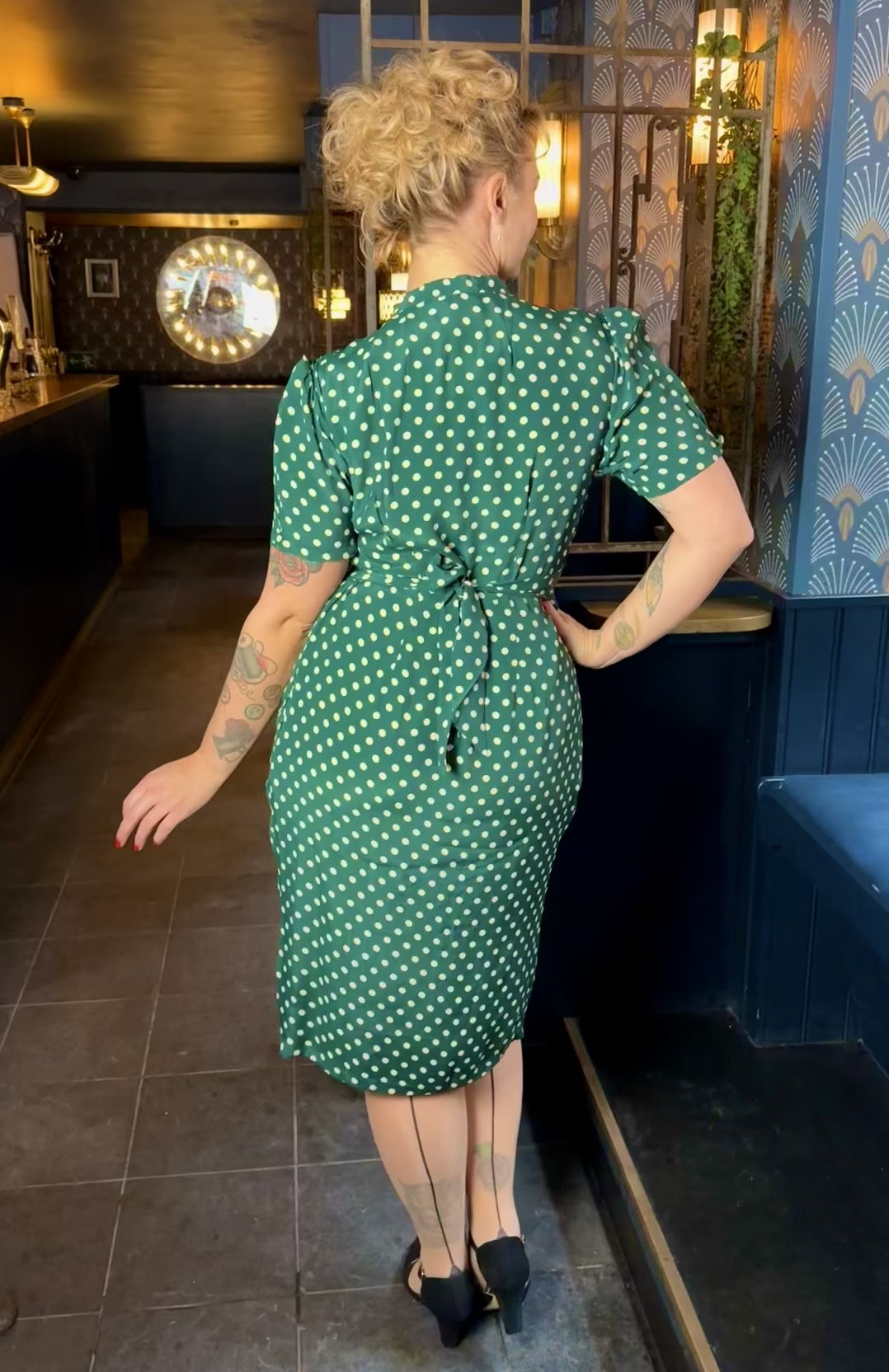 Bloomsbury: Mabel 1940s dress in green spot
