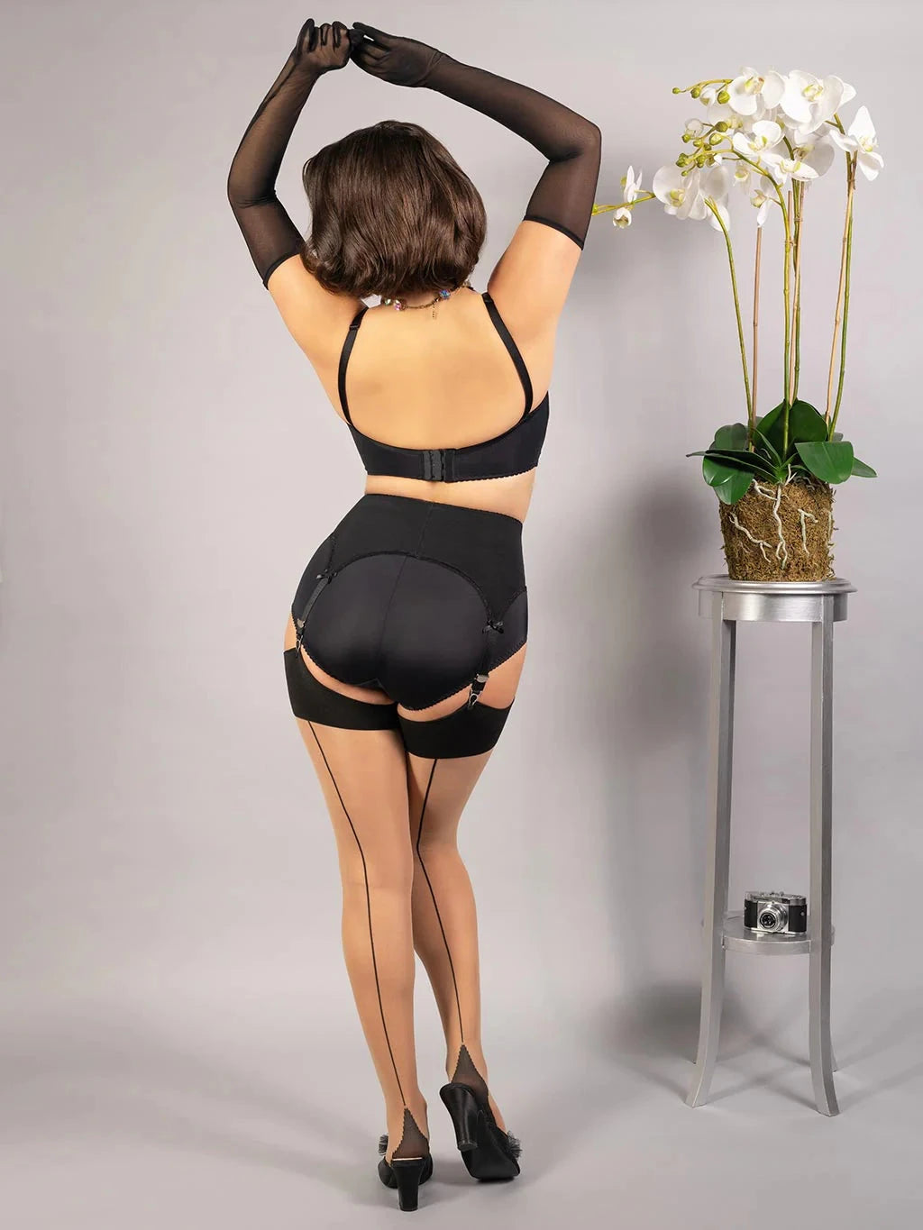 Proudly made in the UK from high-quality European materials, featuring German stocking clips, European elastics, and premium powermesh that gently embraces your curves in all the right places.