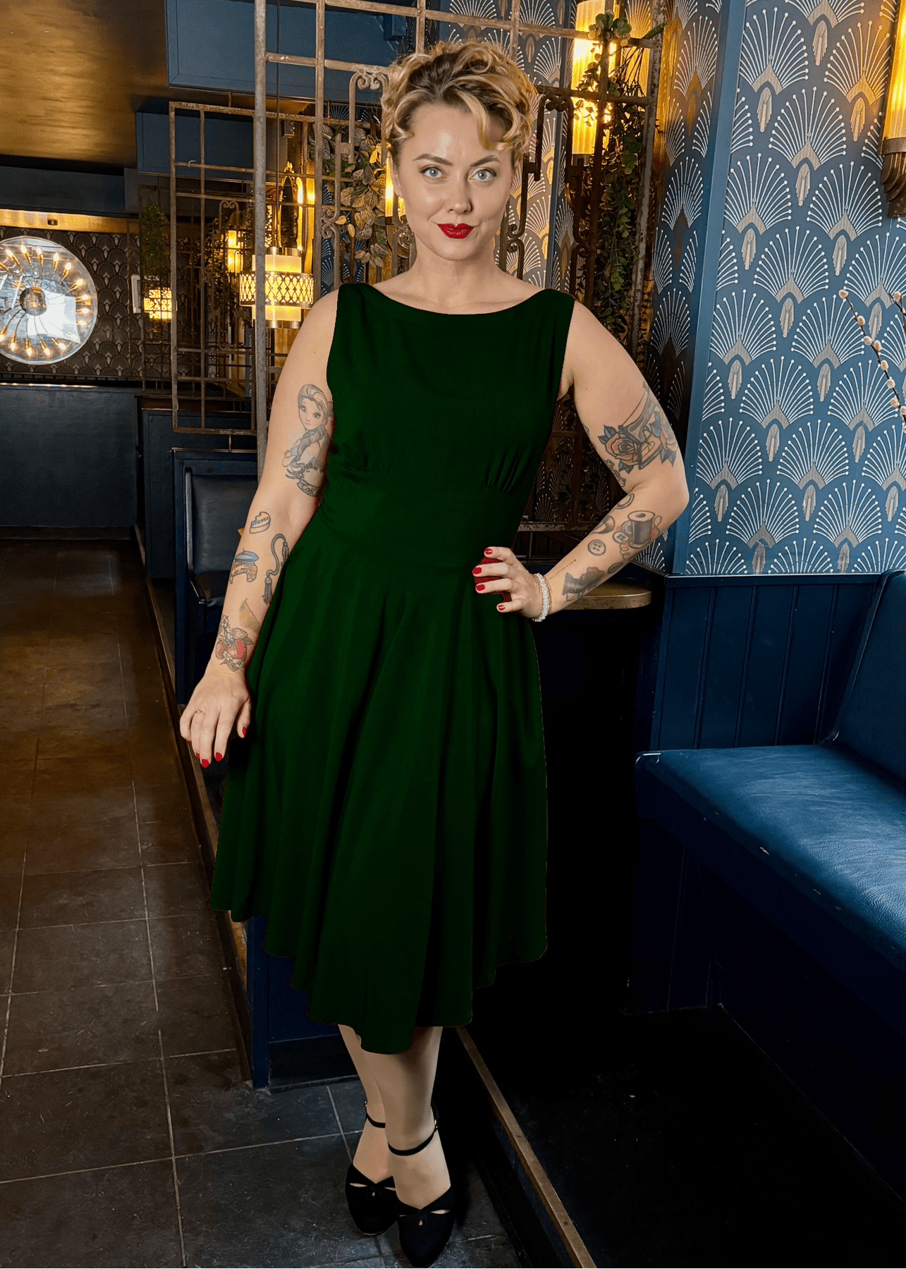 Ruby Swingklänning i Mörkgrönt – 1950-tals Boatneck från Daisy Dapper | Mondo Kaos