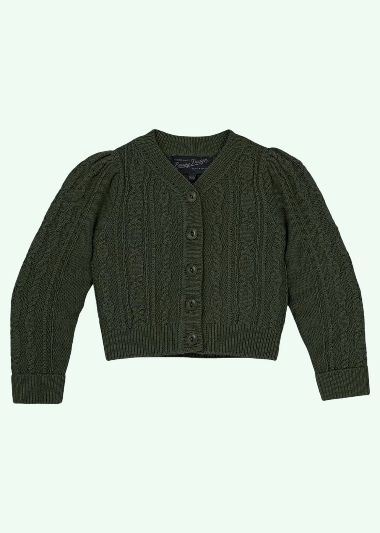 For years, Emmy’s customers have been asking for it, and finally it’s here: the iconic Ice Skater Cardigan, now in a children’s version. Just like the adult model, it features the signature cable knit, puffed shoulders, and high neckline that give it an authentic vintage vibe.