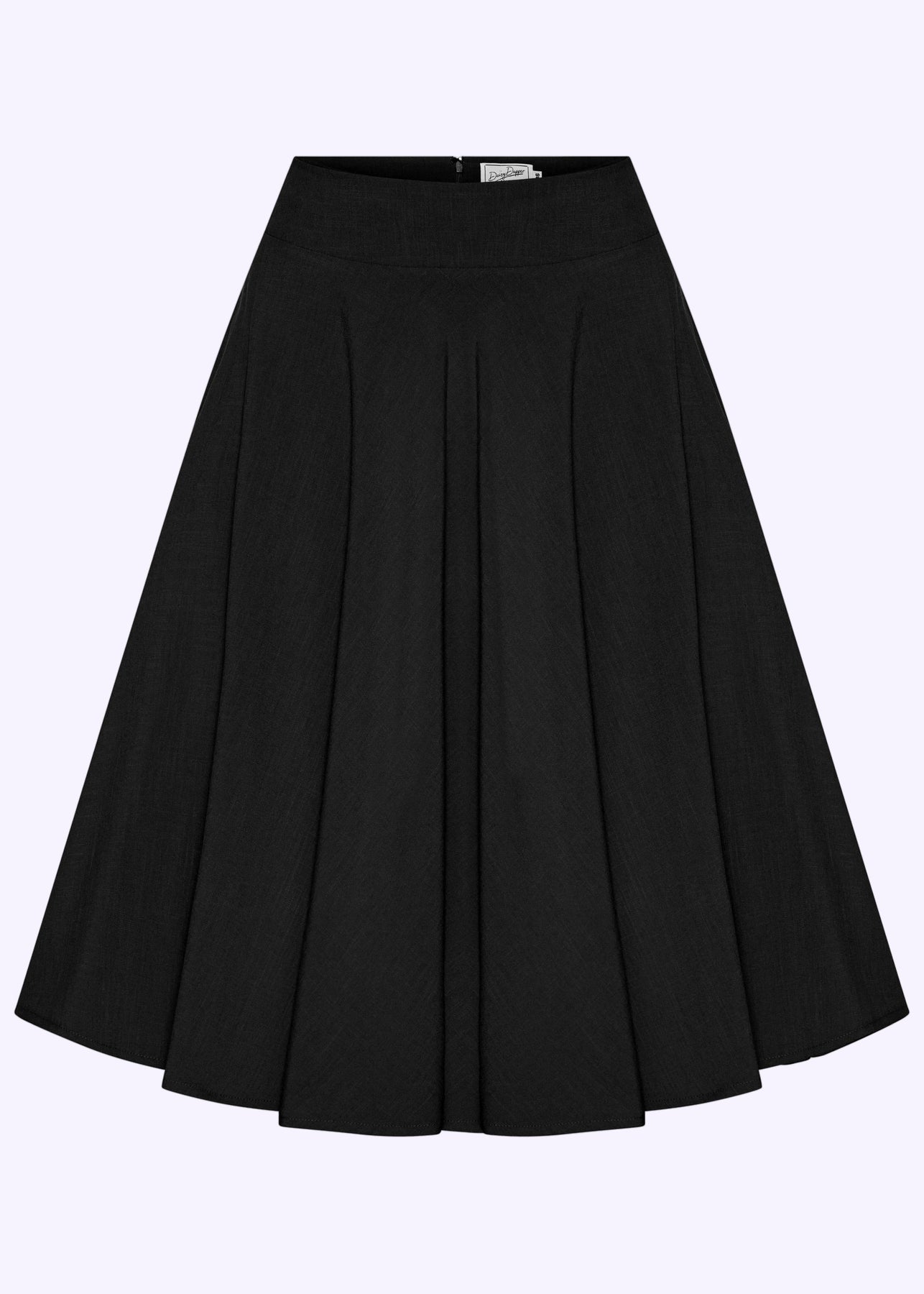 This elegant 1950s-inspired swing skirt from Daisy Dapper is the essence of retro elegance. With its full skirt, fitted waistband and flattering silhouette, it highlights the waist and creates the iconic hourglass shape so characteristic of true vintage style.