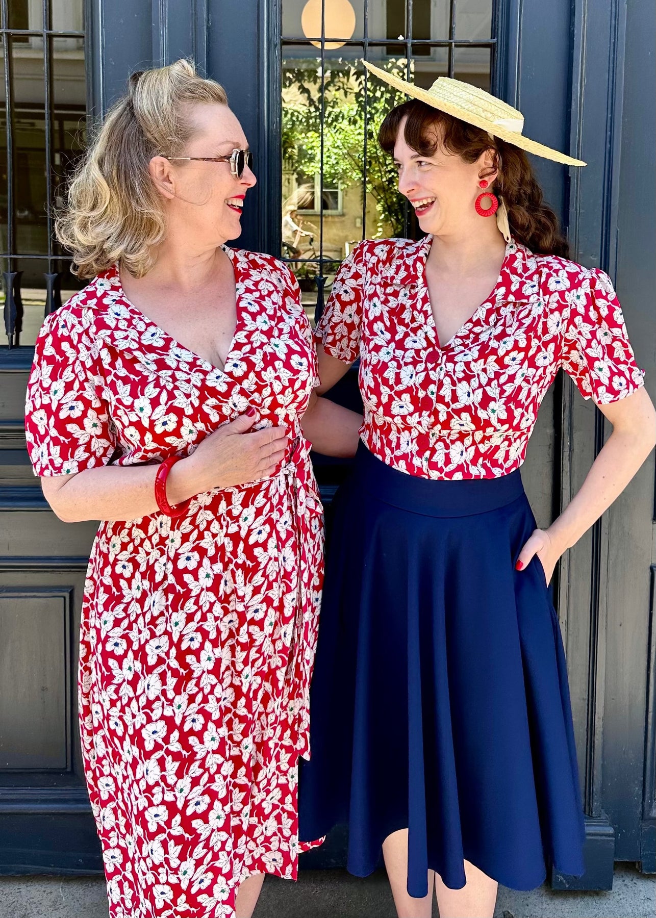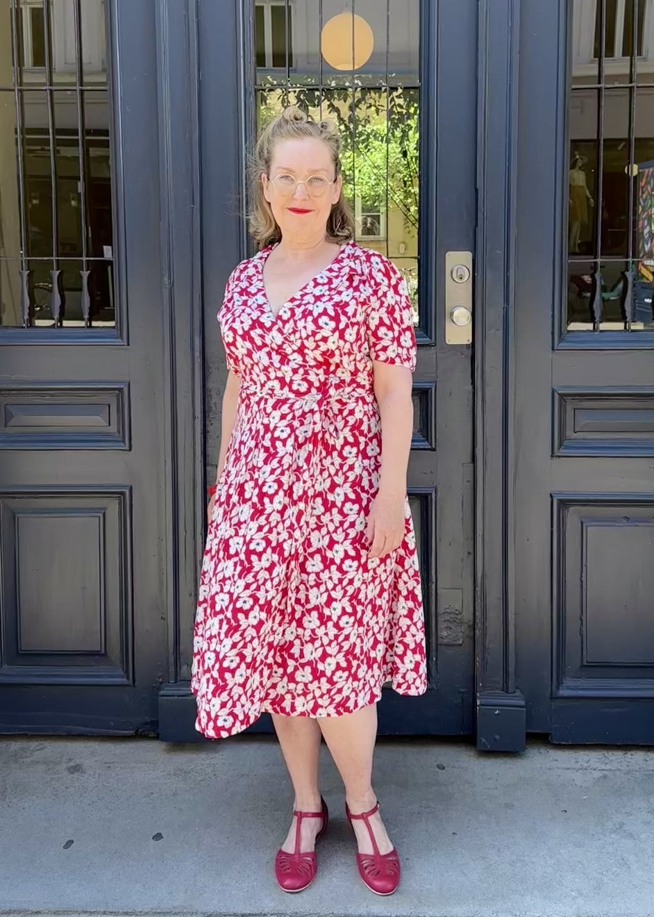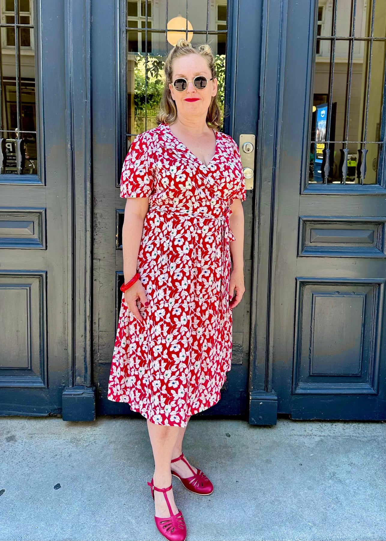 Classic vintage style wrap dress in red with a simple floral print from Seamstress of Bloomsbury.