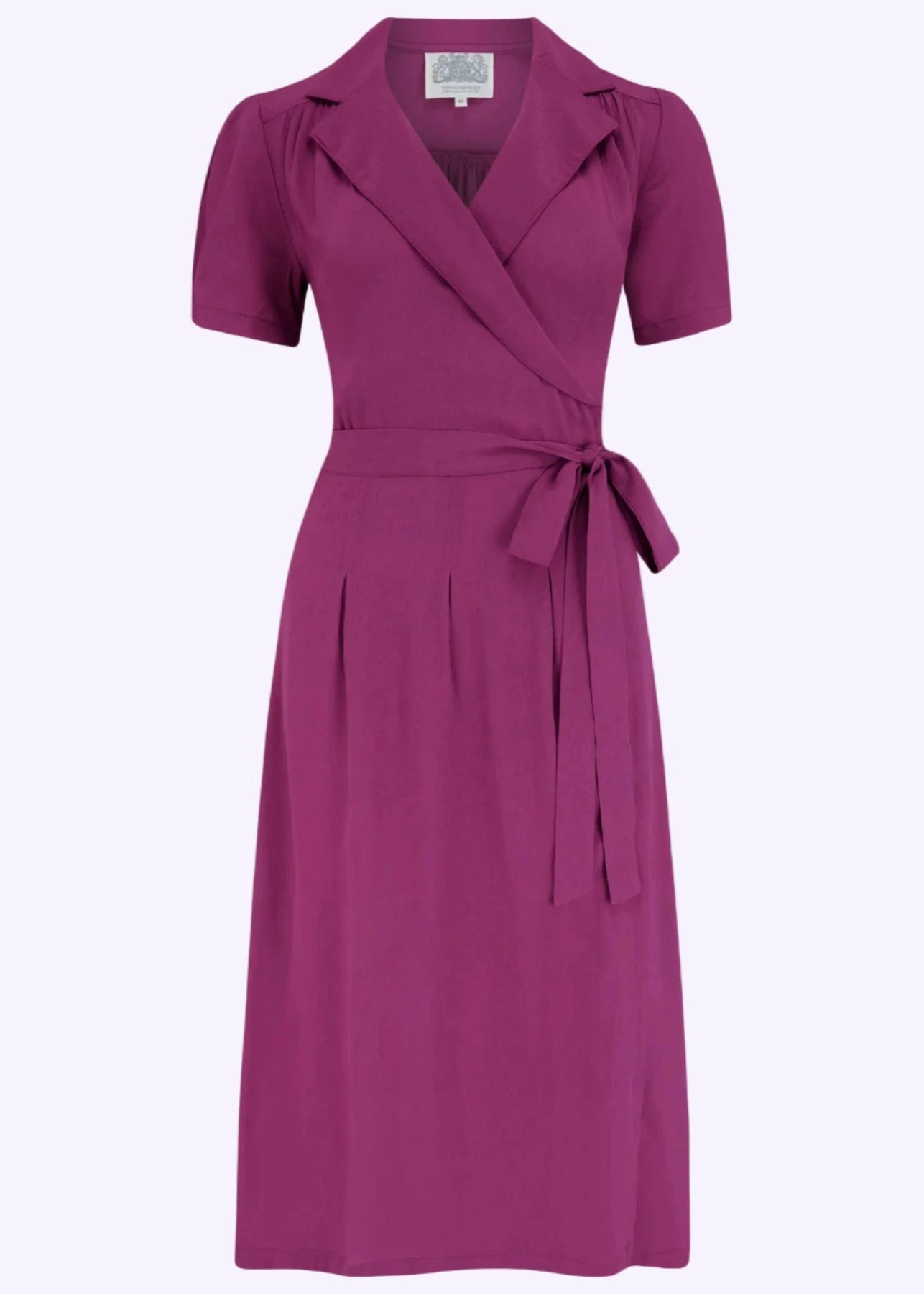 The wrap dress is fitted at the waist and has short sleeves, making it easy to wear all year round. The beautiful wrap dress closes easily with the adjustable tie belt, and the lightweight material gives the dress a beautiful drape and a very authentic vintage look!