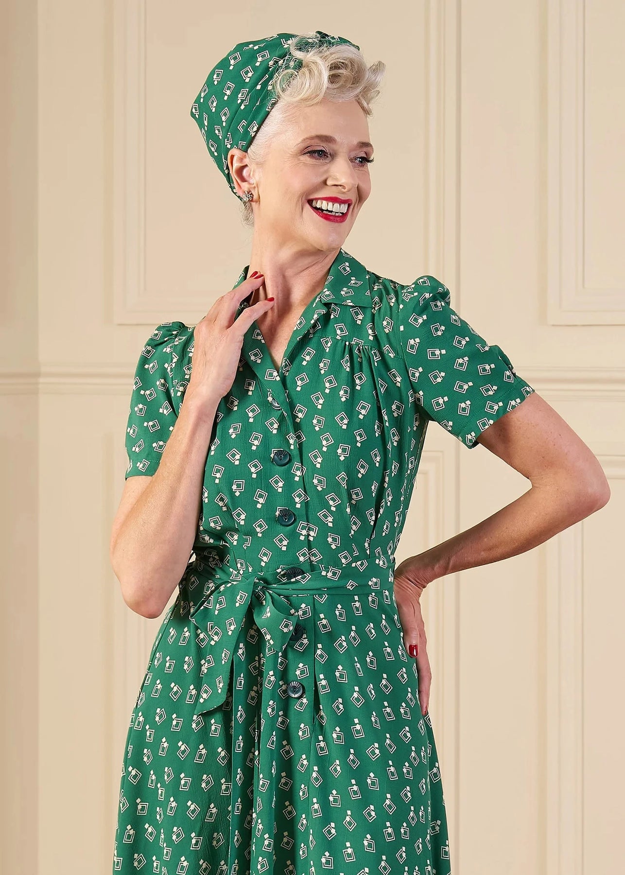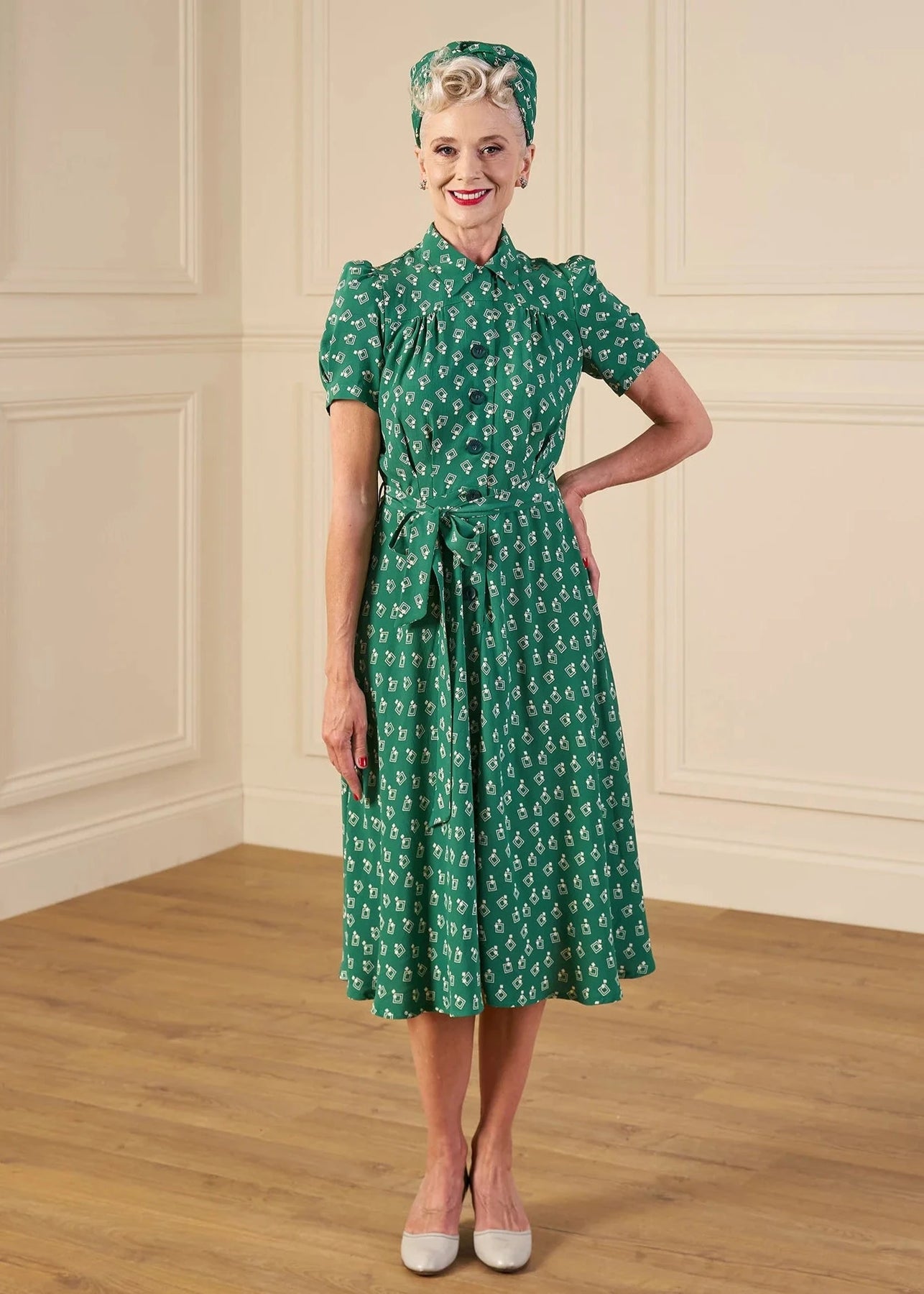 Beautiful 1940s style shirt dress from The House of Foxy in heathered viscose.