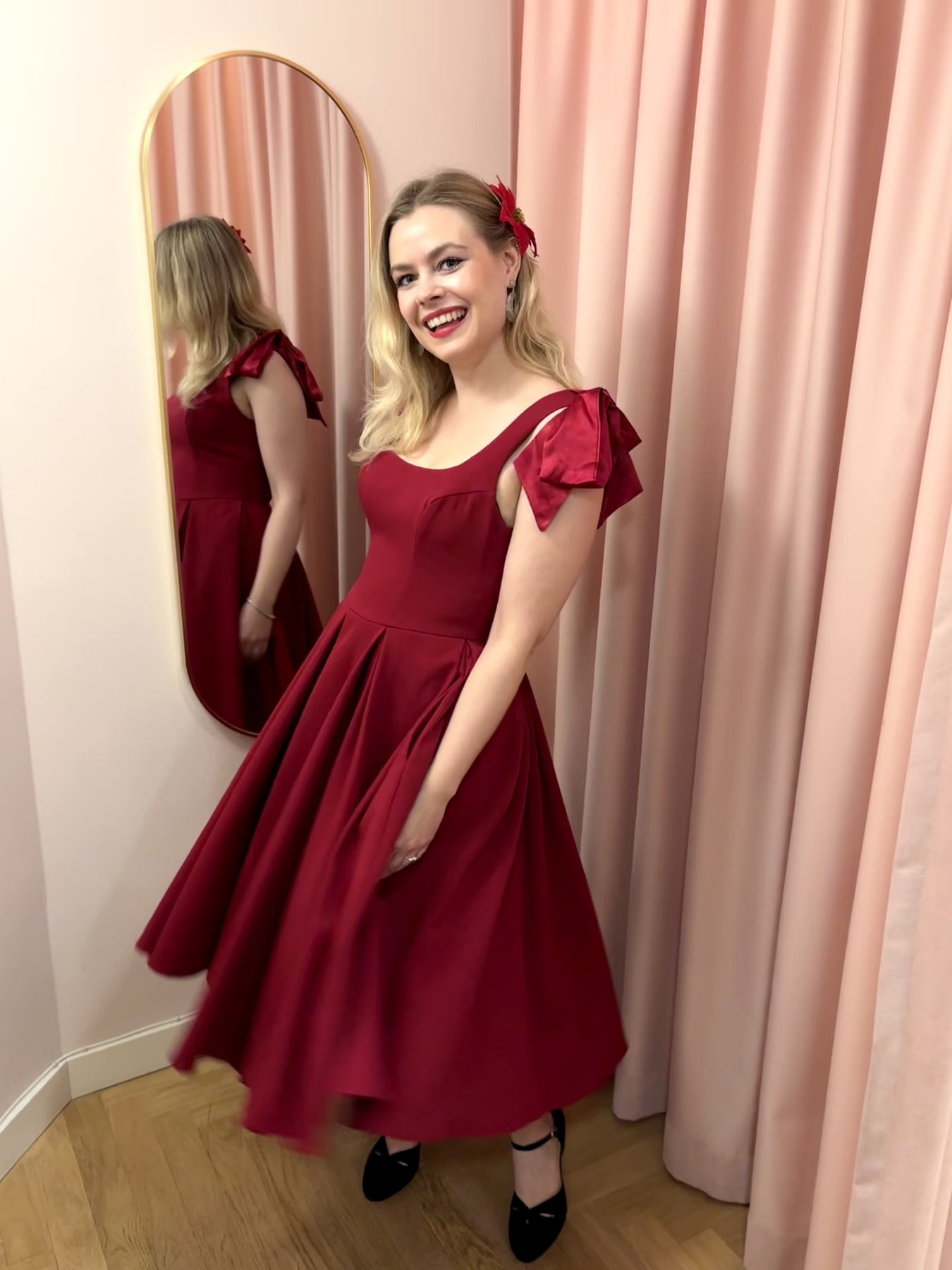 Designed with deep pockets and a concealed centre-back zip, Josephine is both elegant and practical. The rich bordeaux colour enhances the classic feel and makes the dress easy to style year-round.