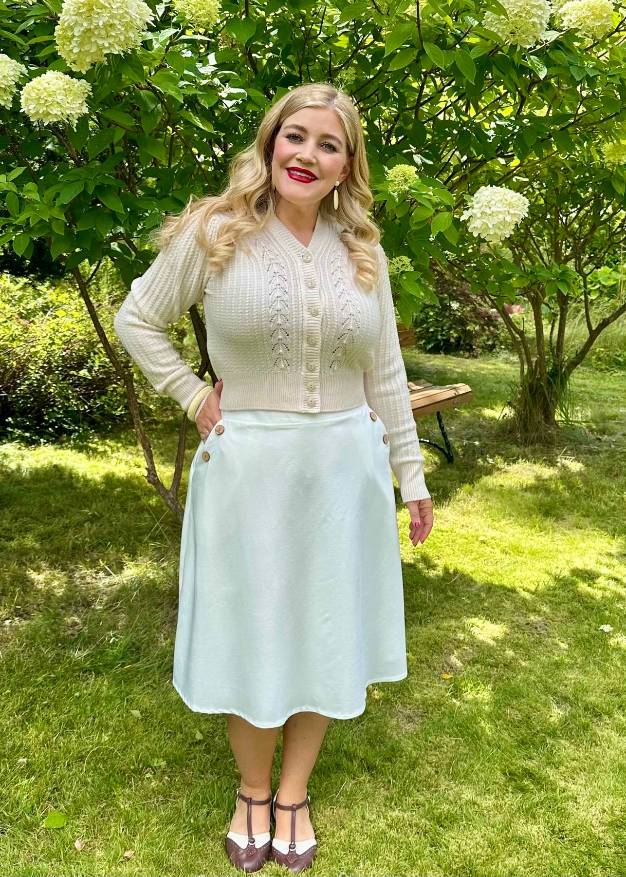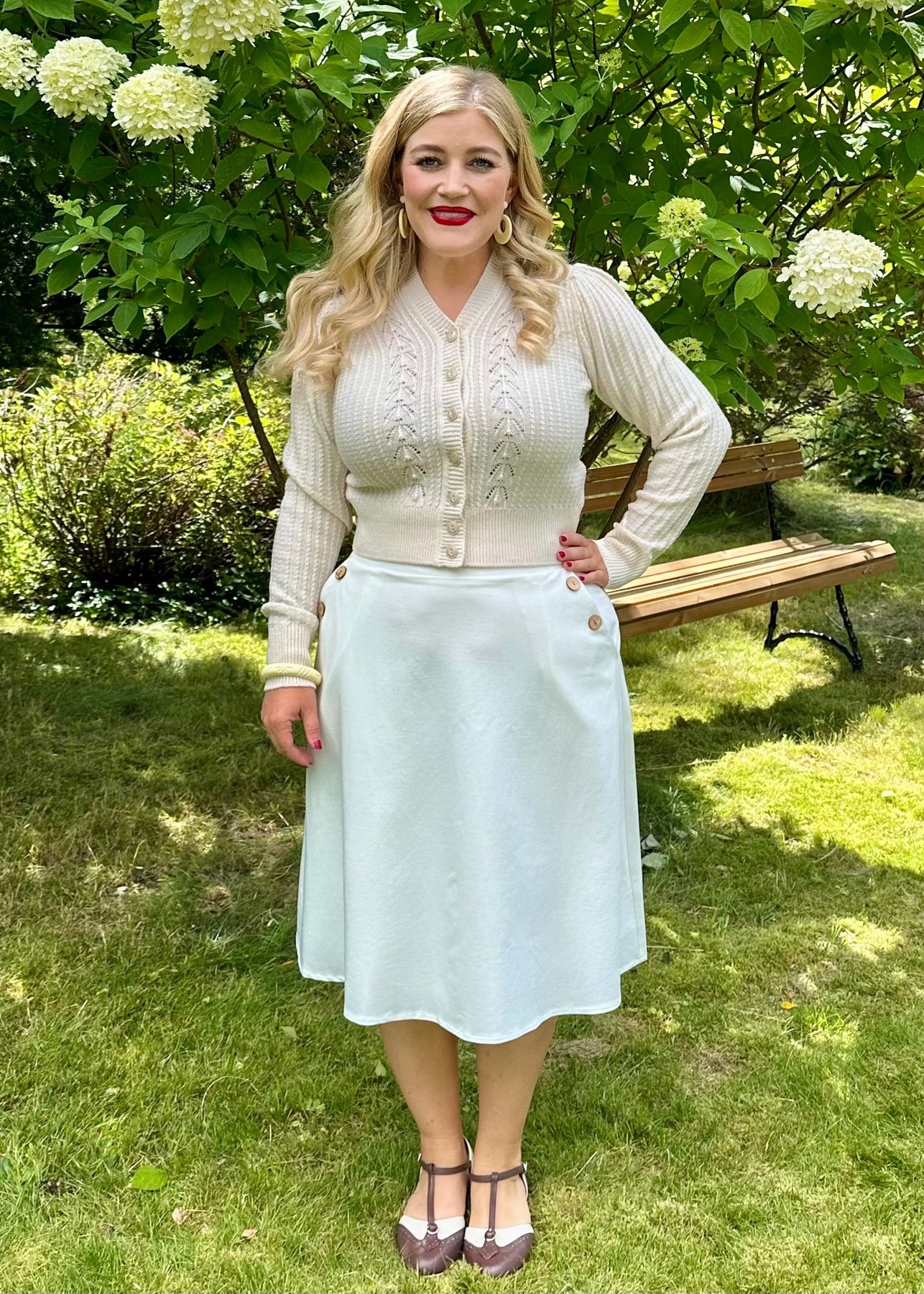The buttons are in coconut and sit in a sailor style at the front of the skirt, giving a nice vintage look.