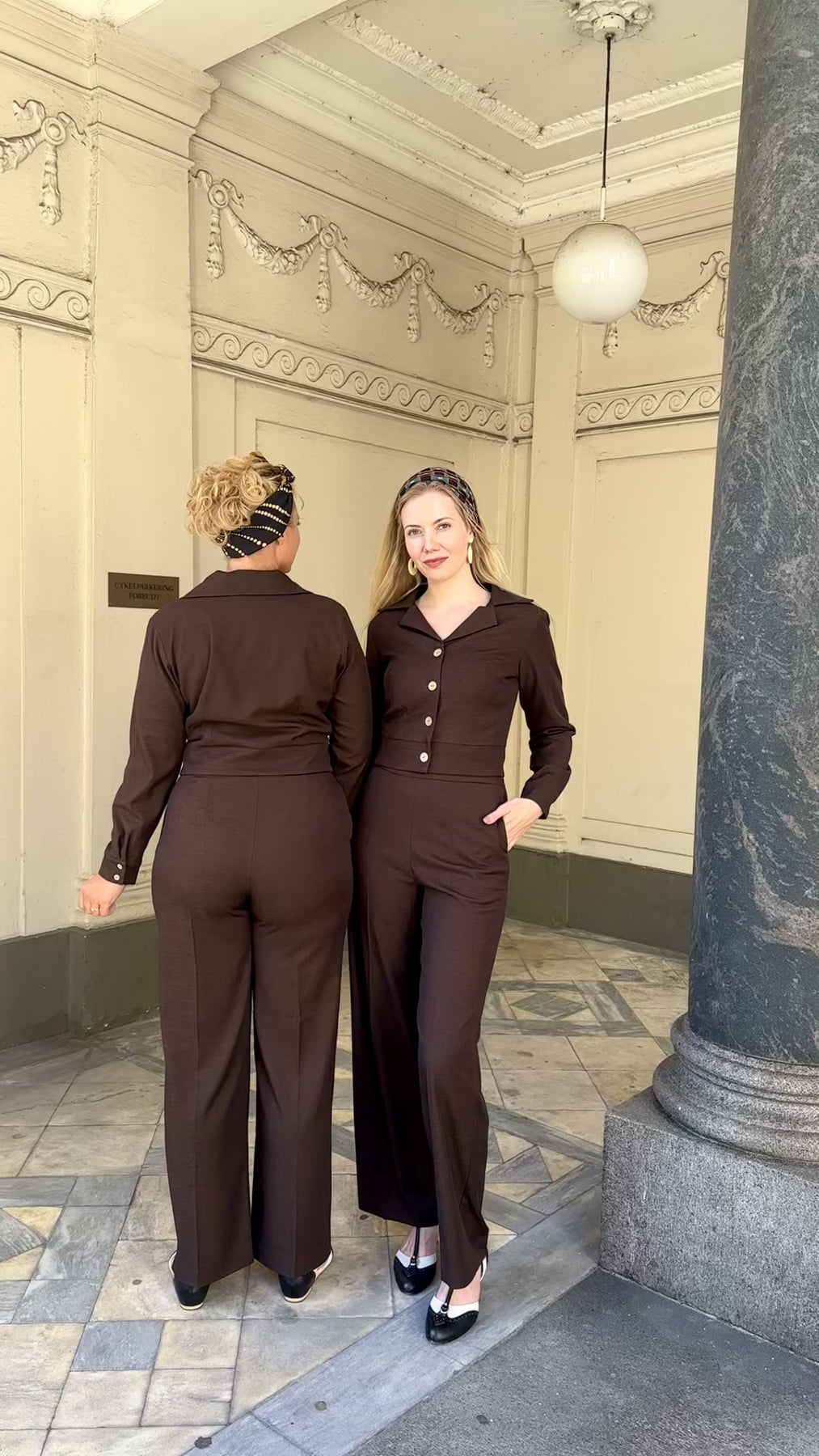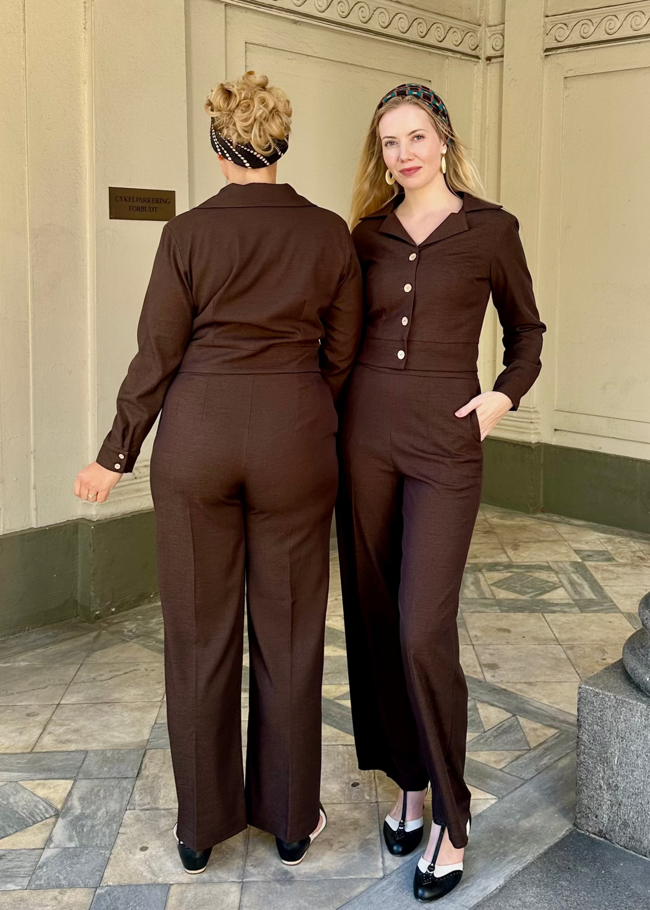 Vintage inspired high-waisted pants in brown from Daisy Dapper.