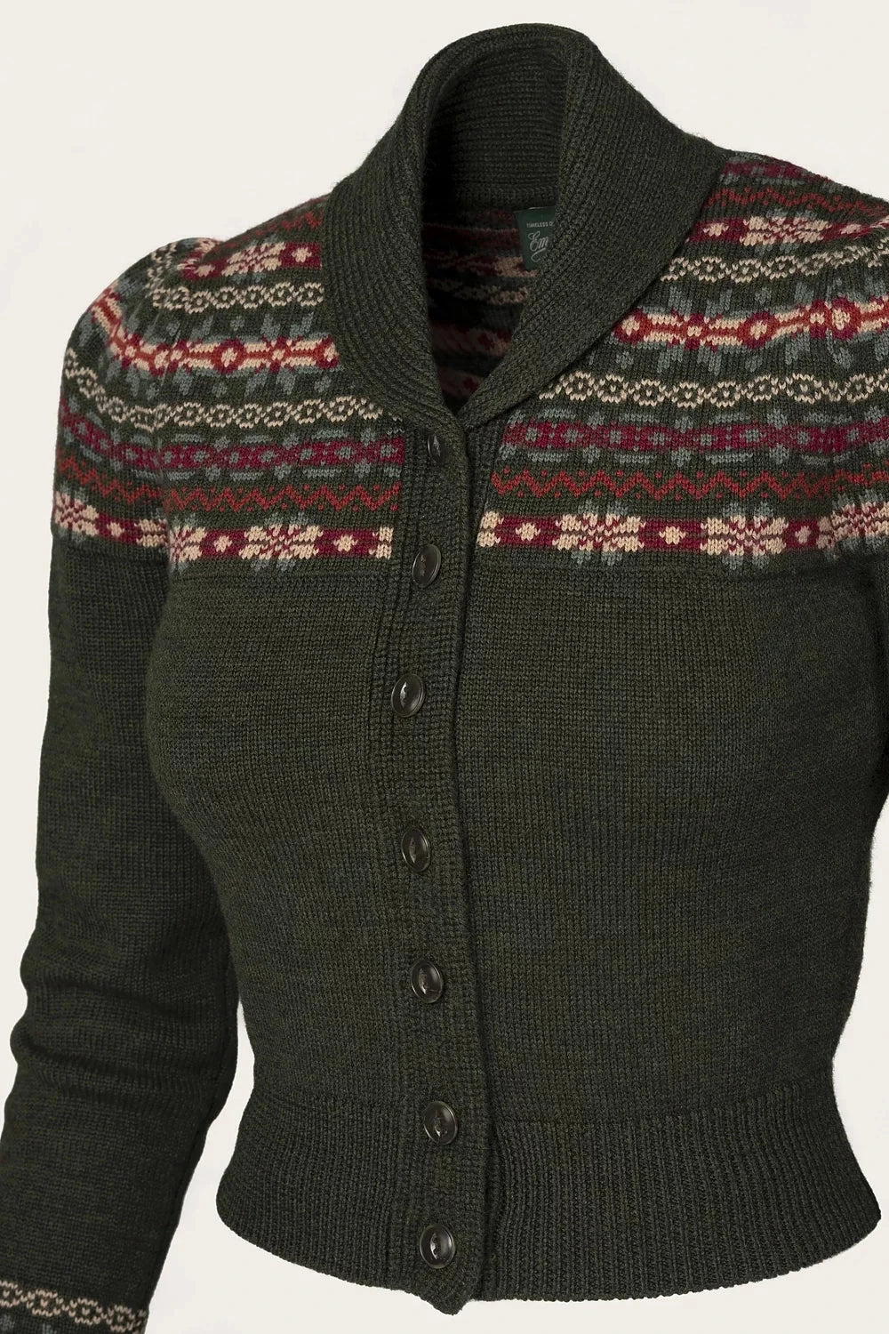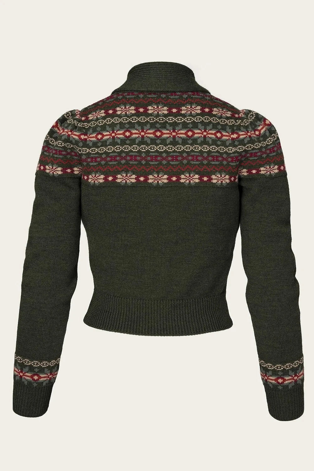 Fair Isle Knit Jacket cardigan in heathered pine green merino wool from Emmy Design