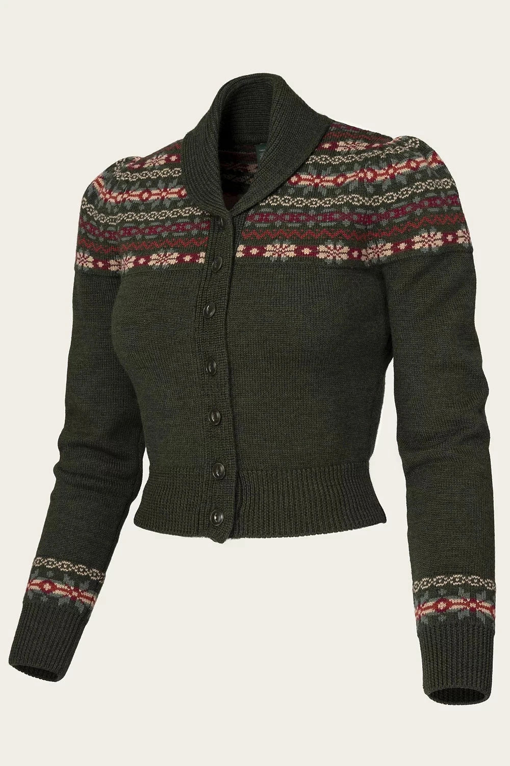 A brand-new cardigan style from Emmy featuring the classic Scandinavian fair-isle pattern.