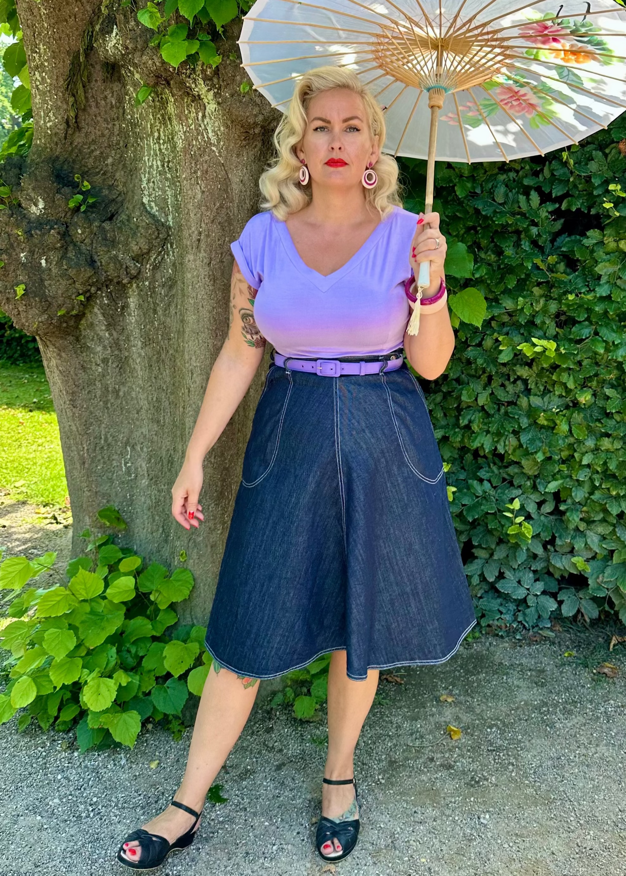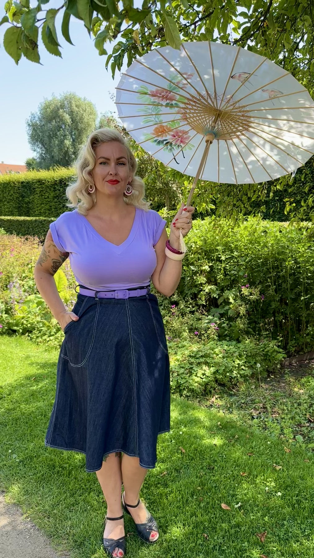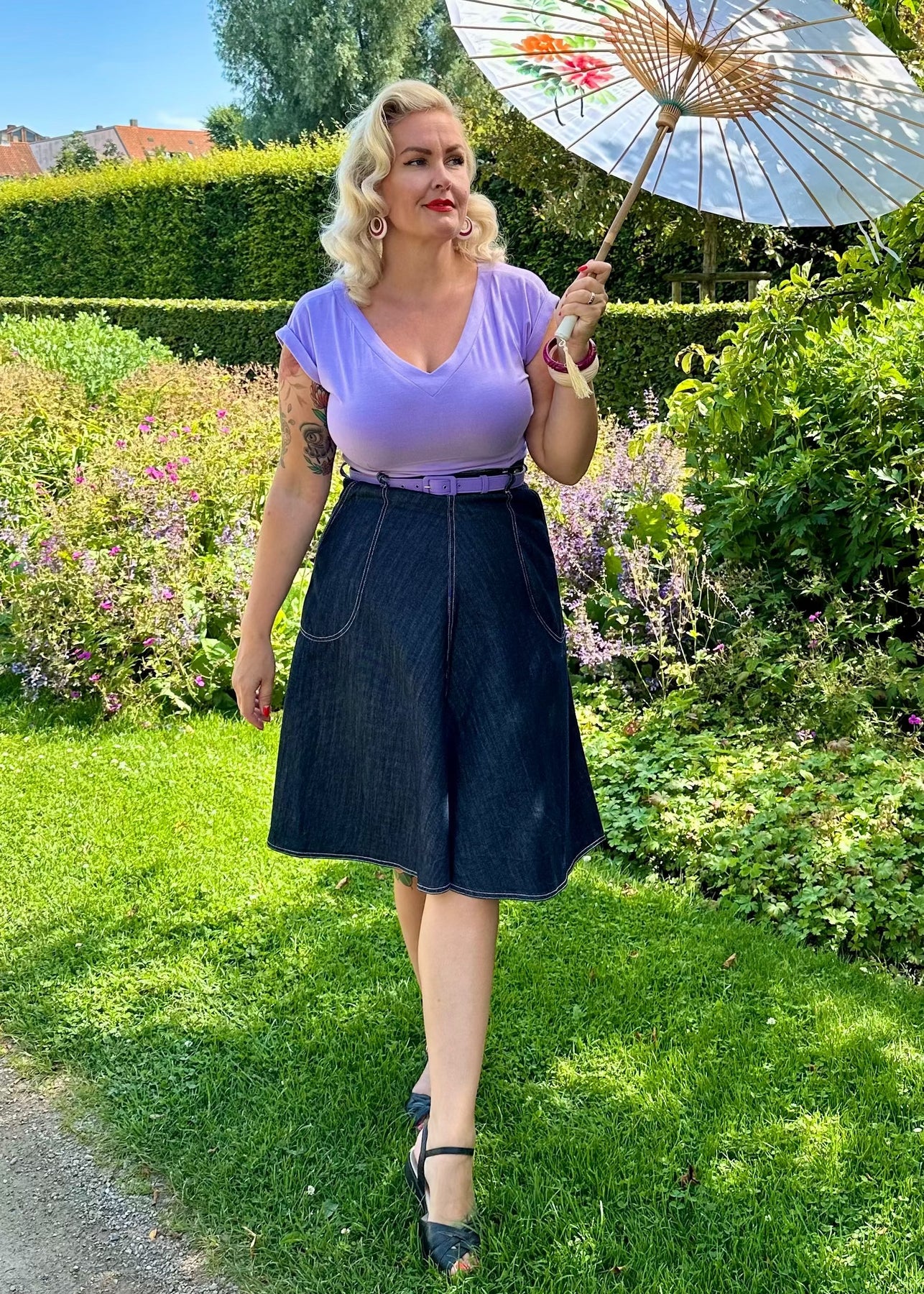 The skirt is in strong denim and it closes with a zip on the side. This skirt has just the right vintage rockabilly look.