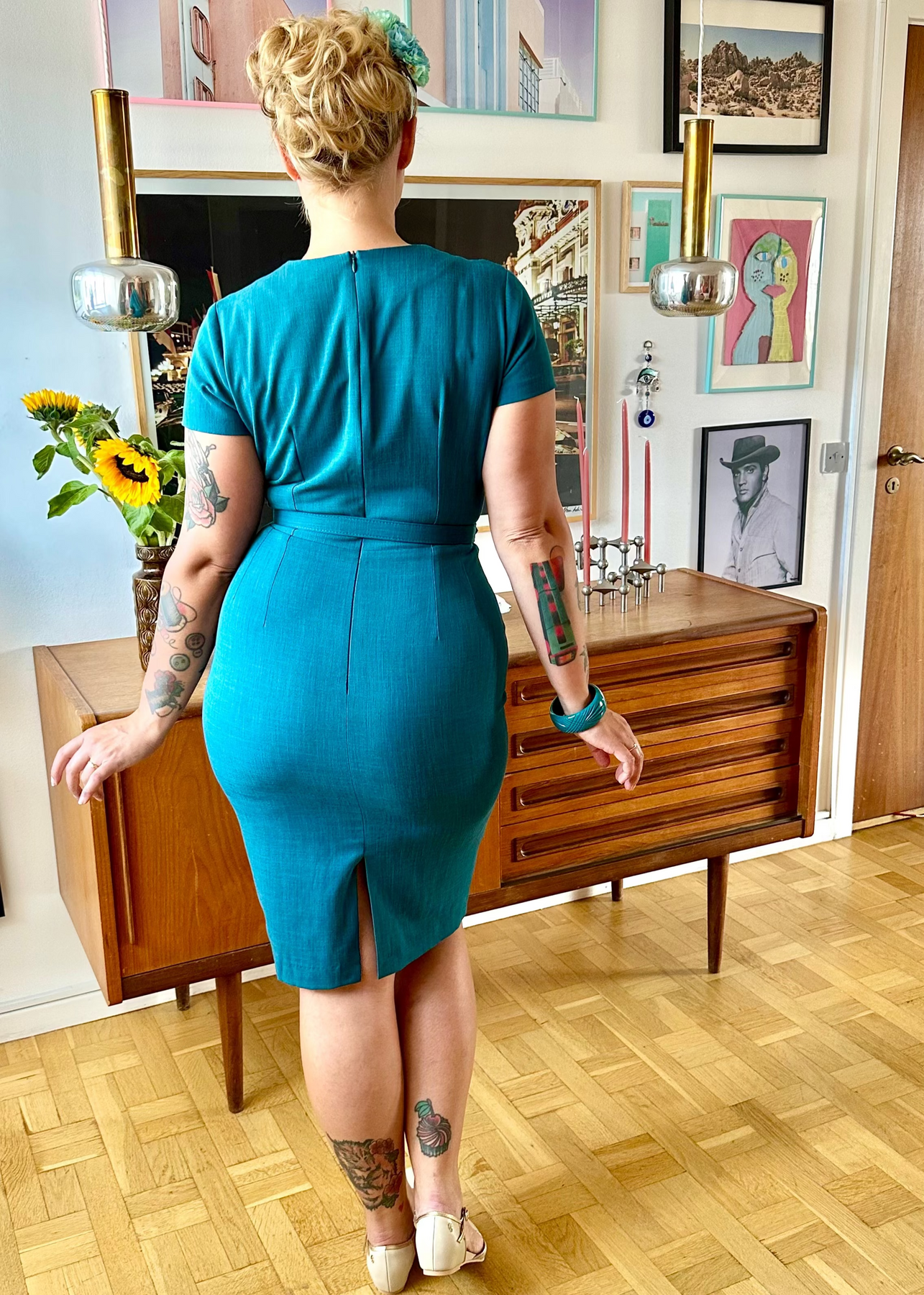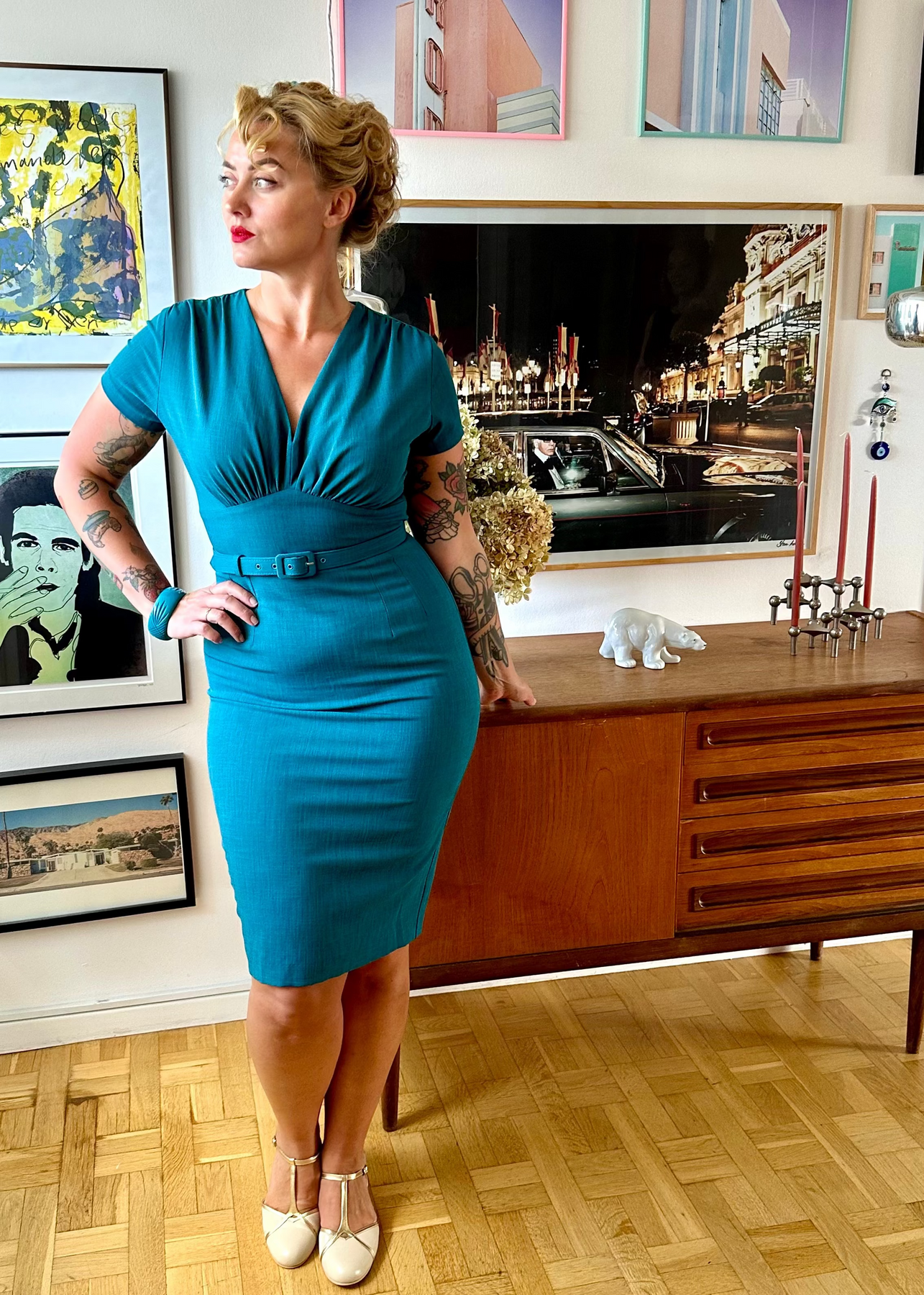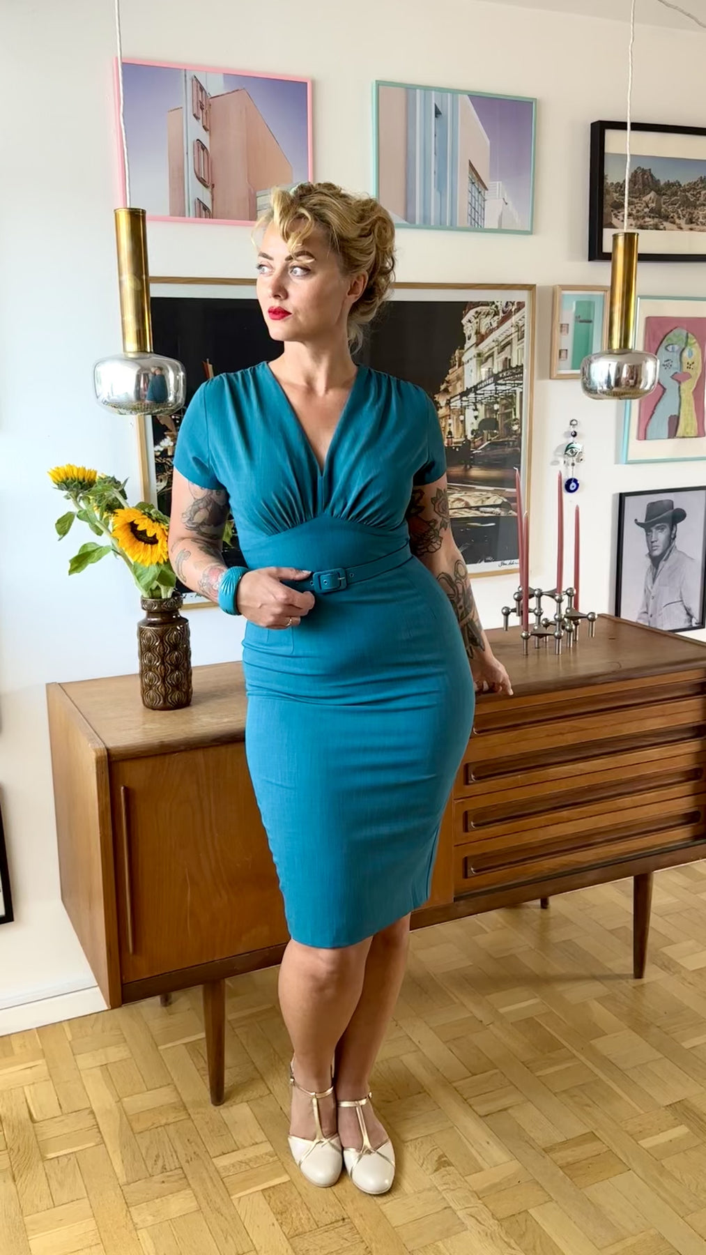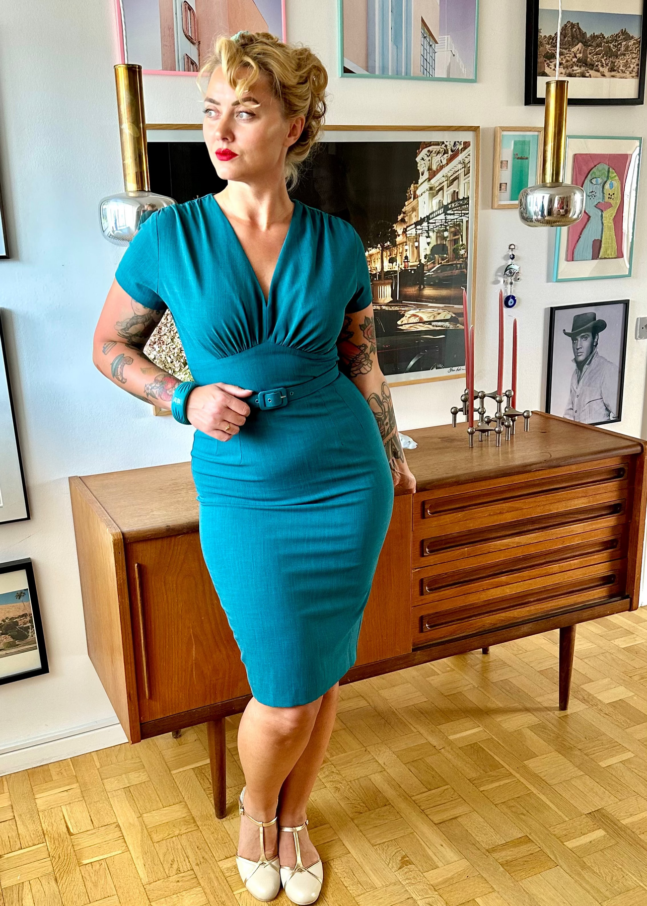 The Holly dress is a great addition to your vintage wardrobe, and the teal colour is beautiful whether you style it for a chic everyday look with a cropped cardigan, or with heels and fishnet stockings for special occasions.
