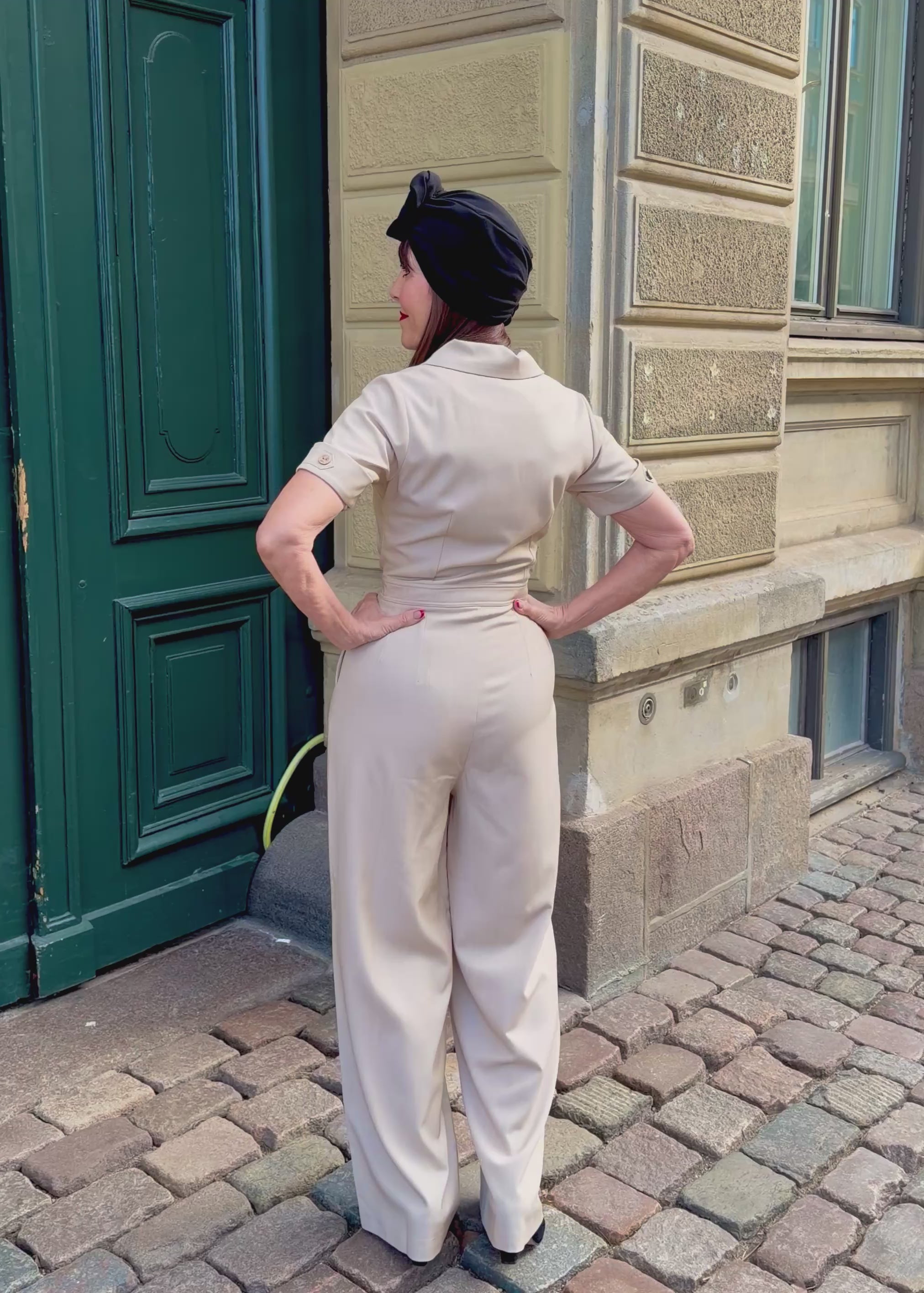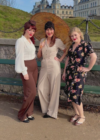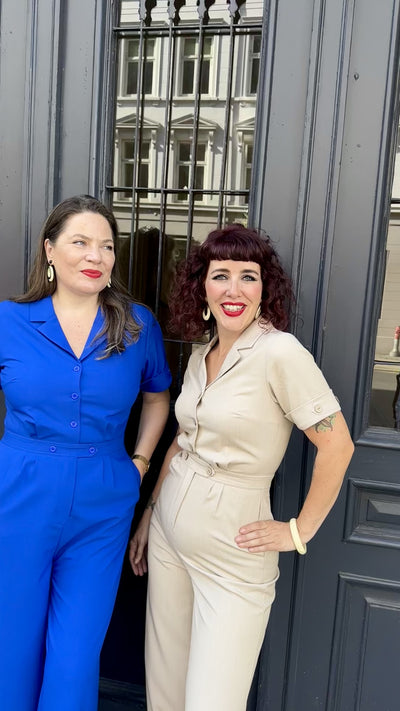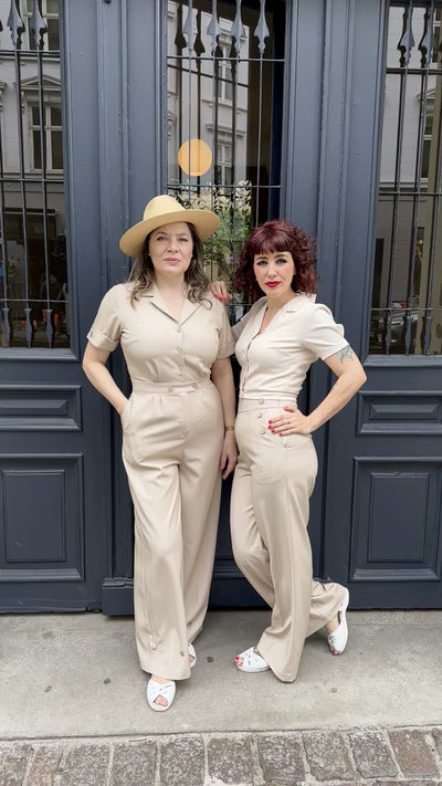 Retro style pantsuit in sand with short sleeves from Daisy Dapper.