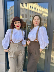 In the spring and summer version of these Emmy classics, the pants are made of 100% linen in a beautiful brown shade and perfect for an elegant 1940s vintage look.
