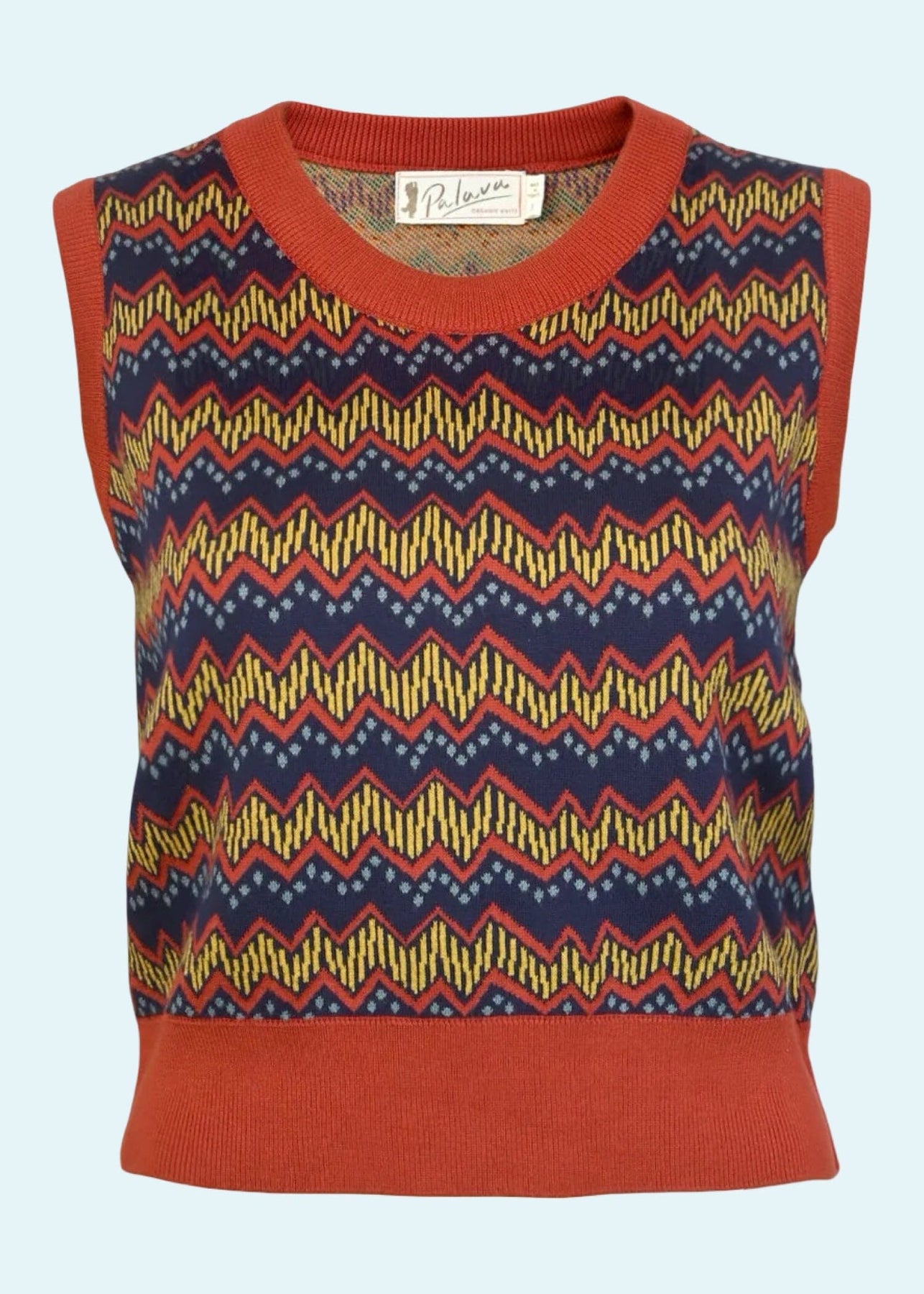 Knitted Vest with Zigzag Pattern in Autumn’s Warm Tones from Palava