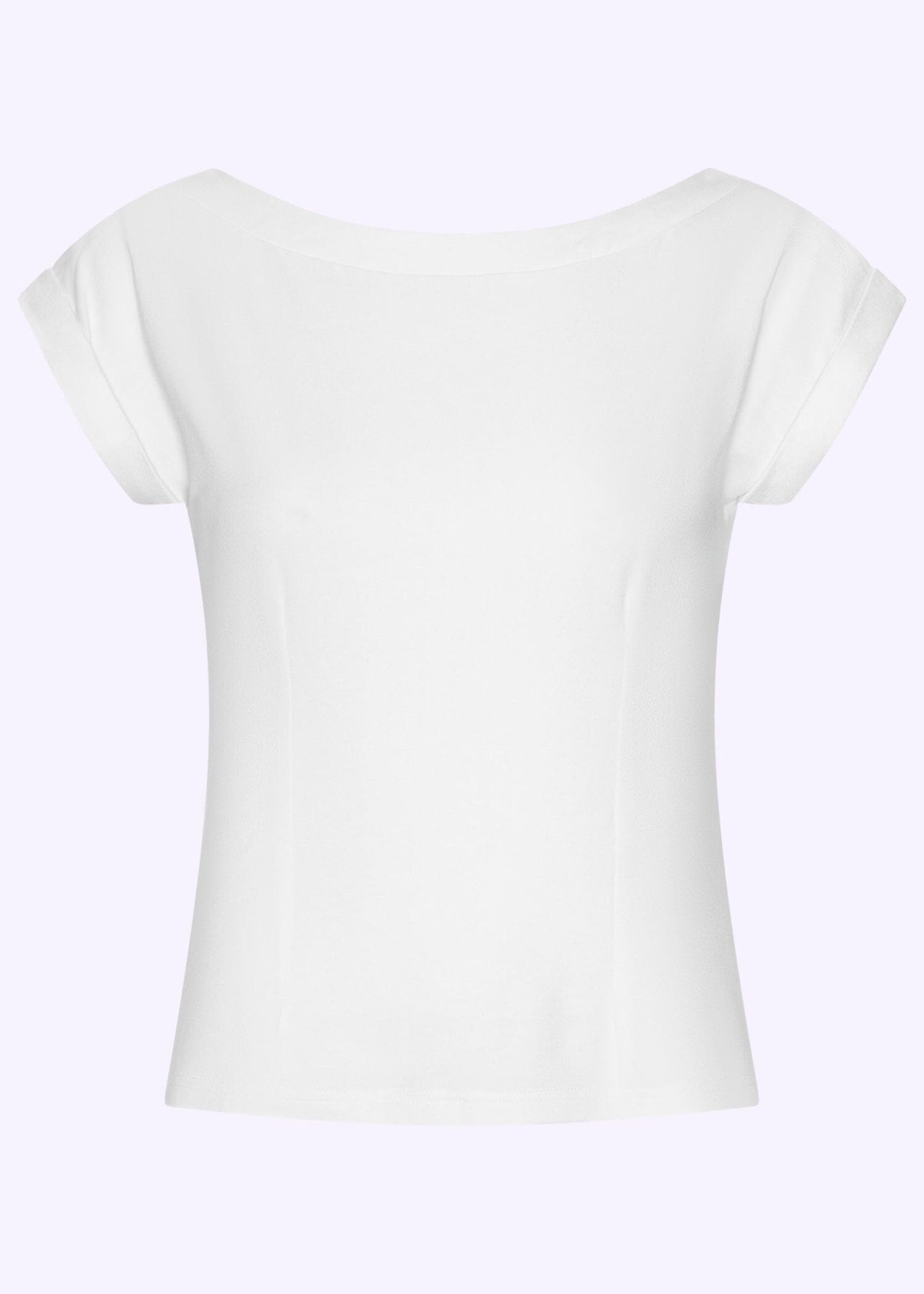 The simple top has a cute boat neckline and a beautiful V-neck, and it can be reversed depending on which one you want to be in front. Comfortable stretch jersey as well as the simple seams ensure the top sits close to the body, making it perfect for the vintage look with high-waisted skirts and pants, making it your perfect go-to top.